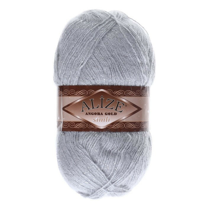 Пряжа для вязания ALIZE Angora Gold Simli Ализе Ангора Голд: 21 (серый), 3 шт 500 м 100 г, 5% металлик, 20% шерсть, 75% акрил