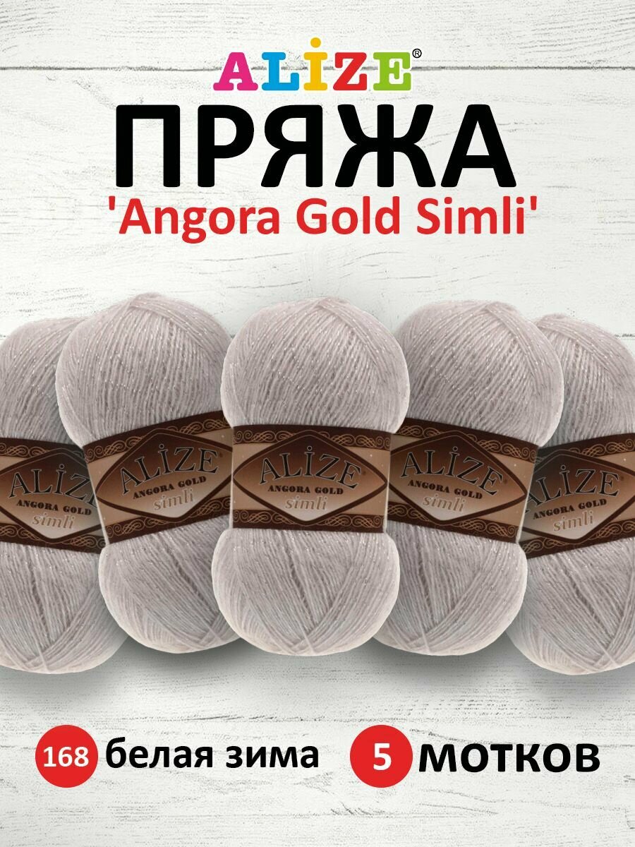 Купить Пряжа для вязания ALIZE 'Angora Gold Simli', 100г, 500м (20% шерсть, 5% металлик, 75% акрил) (168 белая зима), 5 мотков