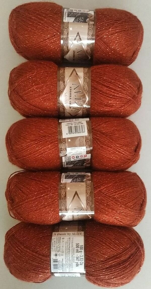 Купить Пряжа Alize Angora Gold simli терракот (36), 75%акрил/20%шерсть/5%метанит, 500м, 100г, 5шт