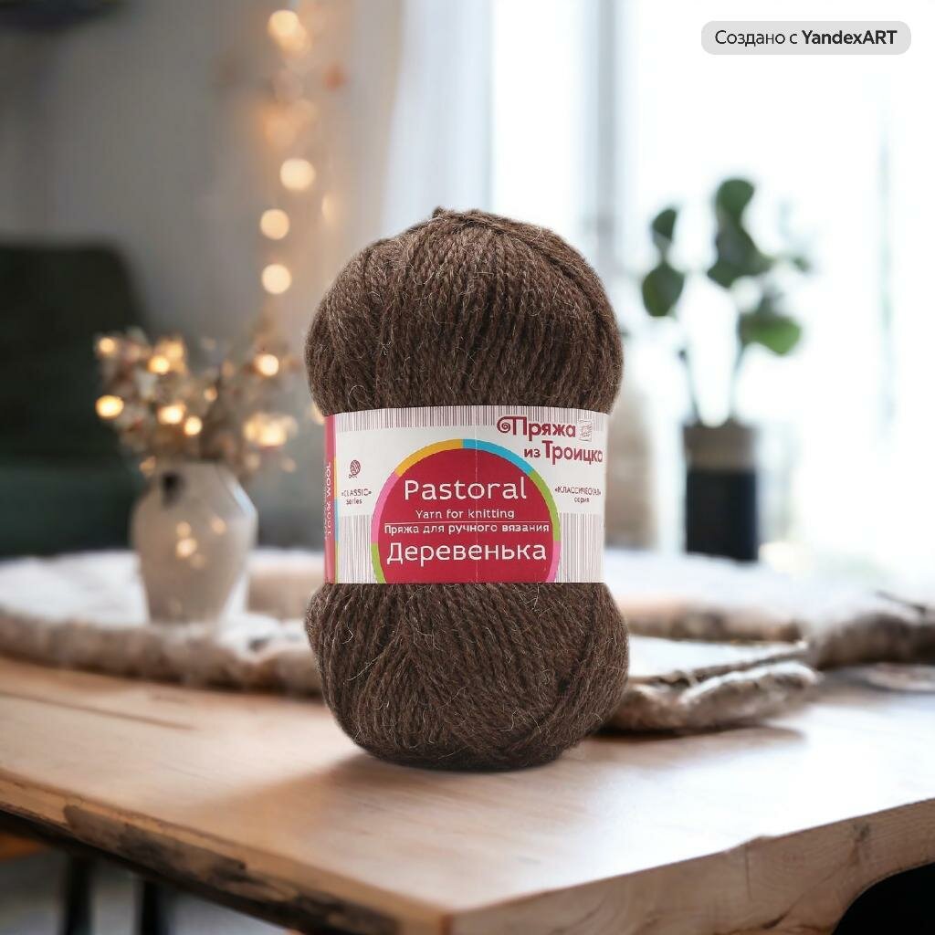 Пряжа для вязания из Троицка 'Деревенька' (100%шерсть) (251 коричневый), 10 мотков