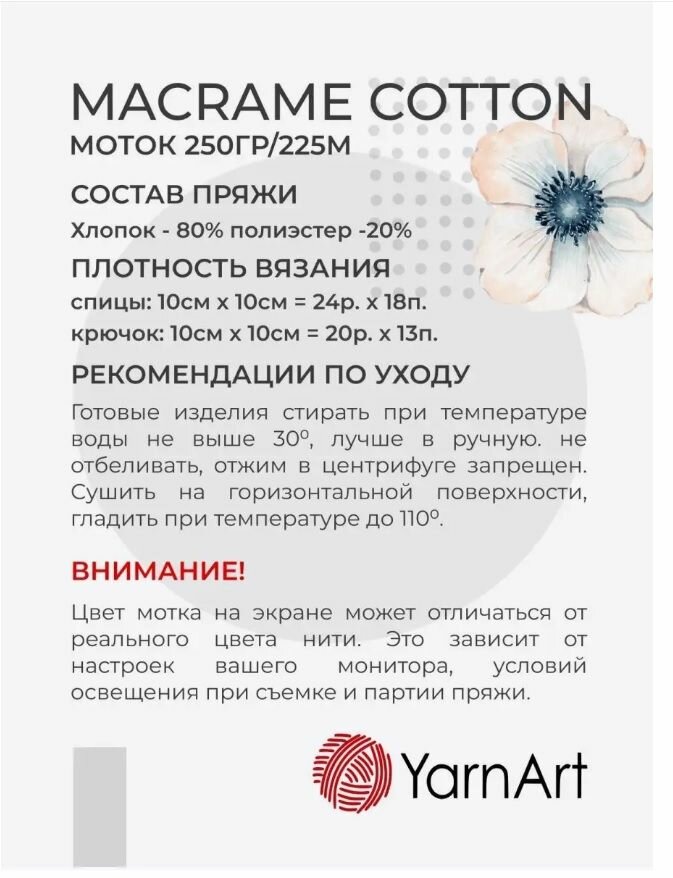 СохранитьПряжа YarnArt Macrame Cotton 753, Ярнарт Макраме Коттон 80% хлопок, 20% полиэстр, 250 г, 225 м, 1 моток интересное: