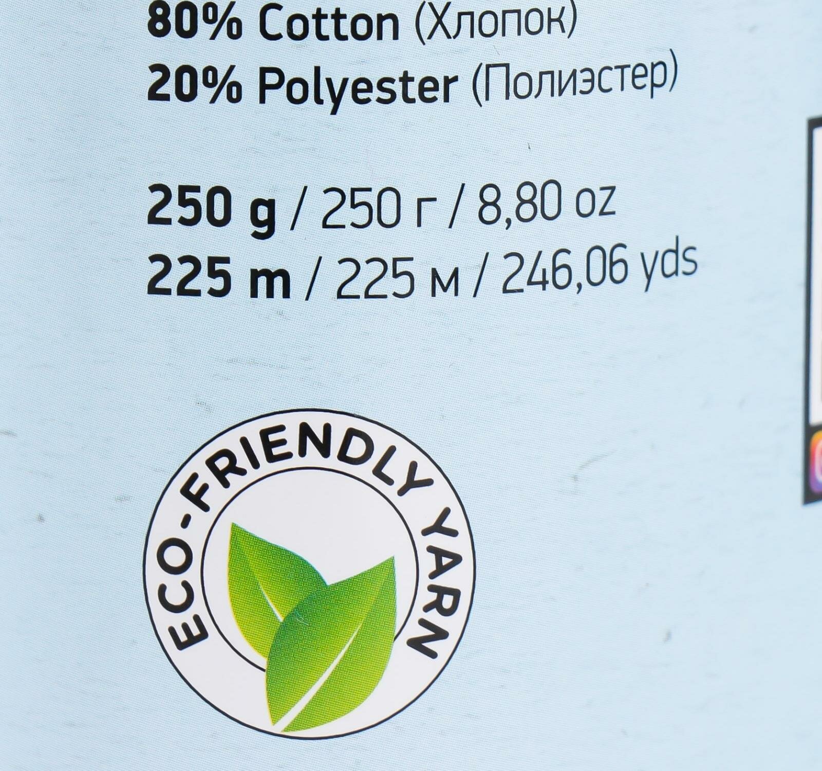 Пряжа YarnArt Macrame cotton бледно-бирюзовый (775), 85%хлопок/15%полиэстер, 225м, 250г, 2шт