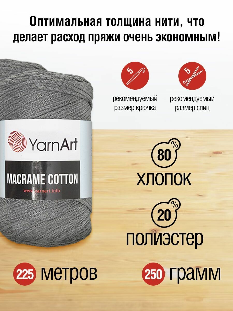 Купить Пряжа для вязания YarnArt 'Macrame Cotton' 250гр 225м (80% хлопок, 20% полиэстер) (774 темно-серый), 4 мотка