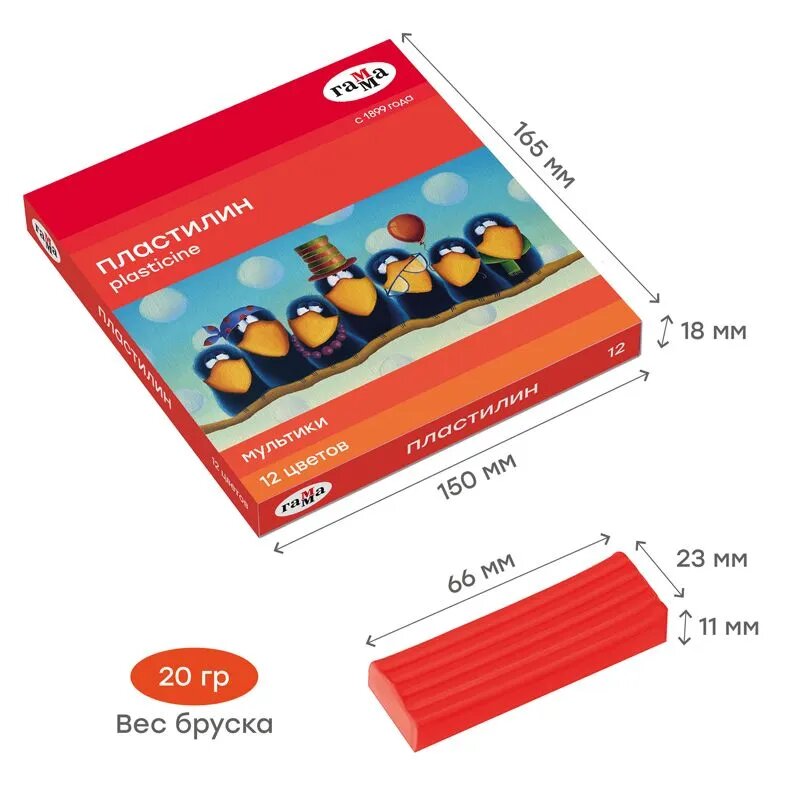 Купить Пластилин для лепки Гамма "Мультики" мягкий детский, 12 цветов, со стеком / Набор для развития и творчества детей в школу и детский сад