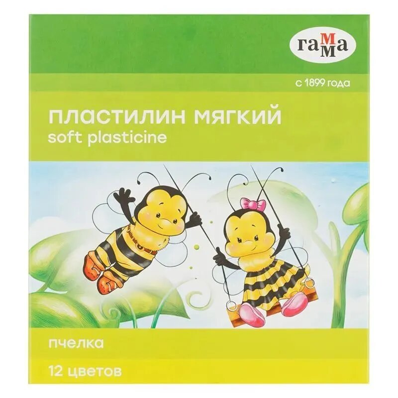 Пластилин для лепки Гамма "Пчелка" восковой мягкий детский, 12 цветов, со стеком / Набор для развития и творчества детей в школу и детский сад