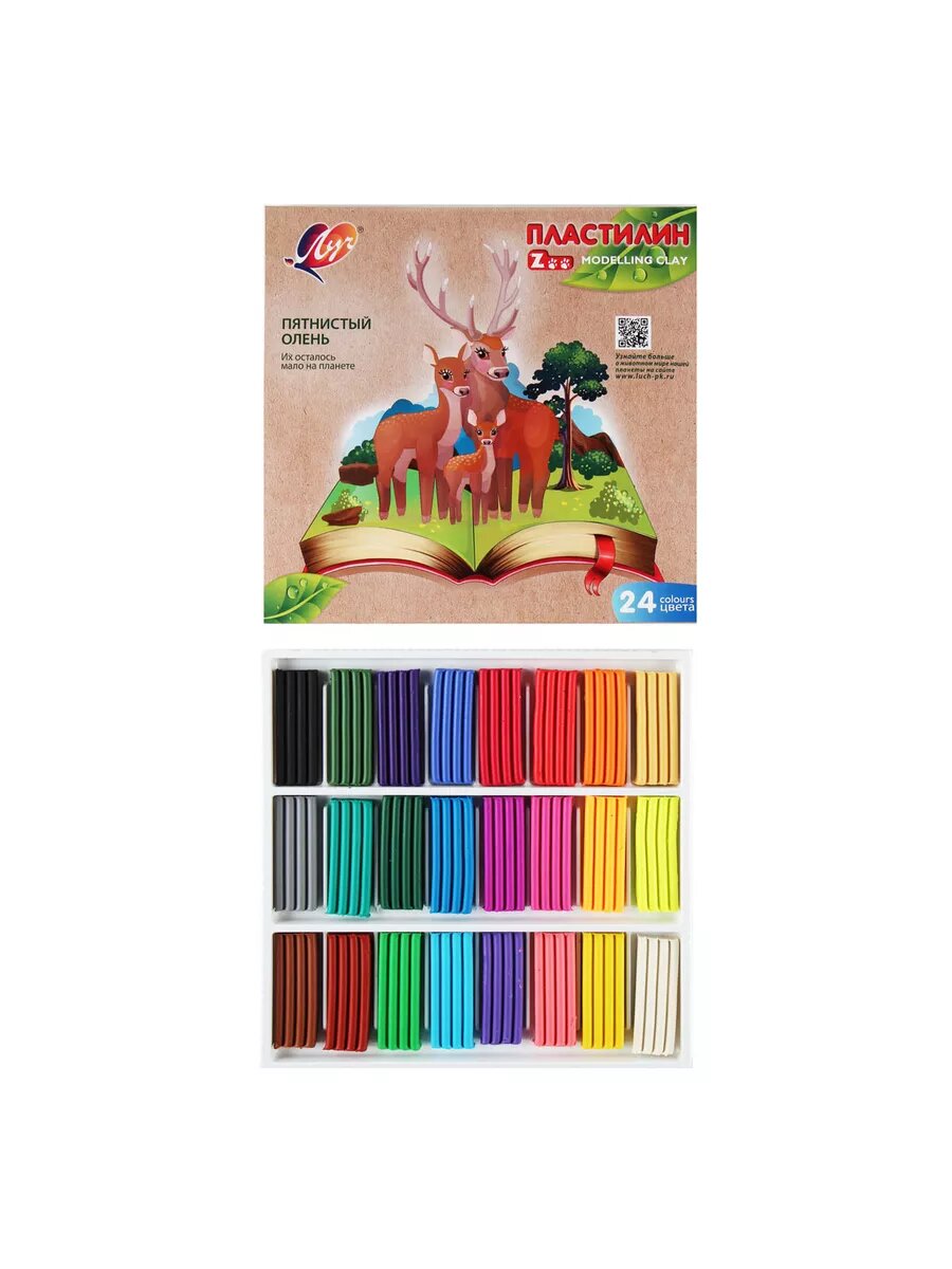 Пластилин Луч Zoo, 24 цвета, мягкий, для лепки