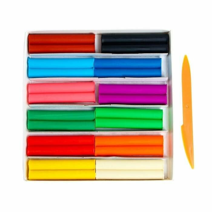 Пластилин 12 цветов, 210гр со стеком "Фантазия", восковой, интересное: