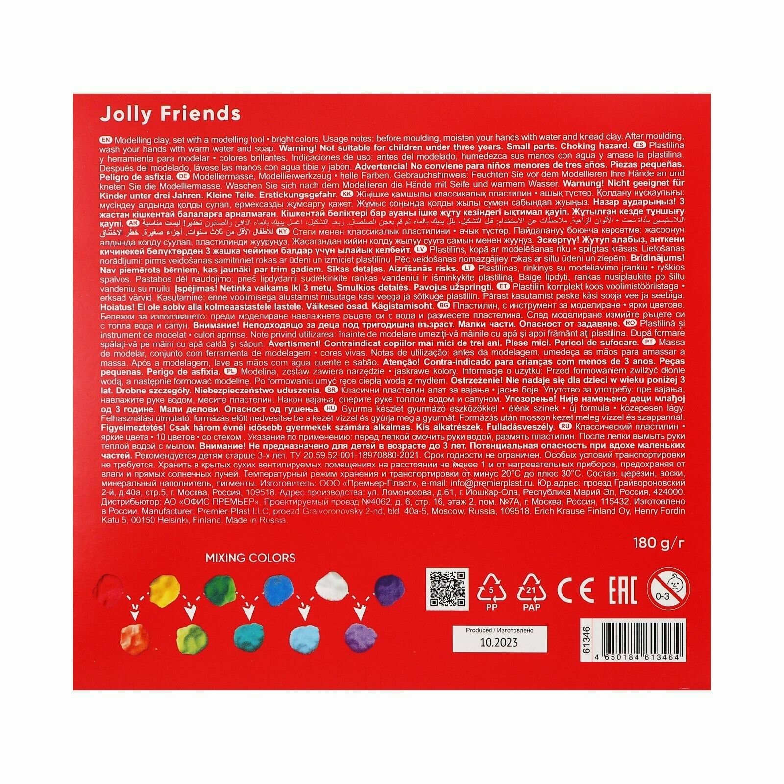 Пластилин 10 цветов, 180 г, ErichKrause Jolly Friends , со стеком, в картонной упаковке интересное: