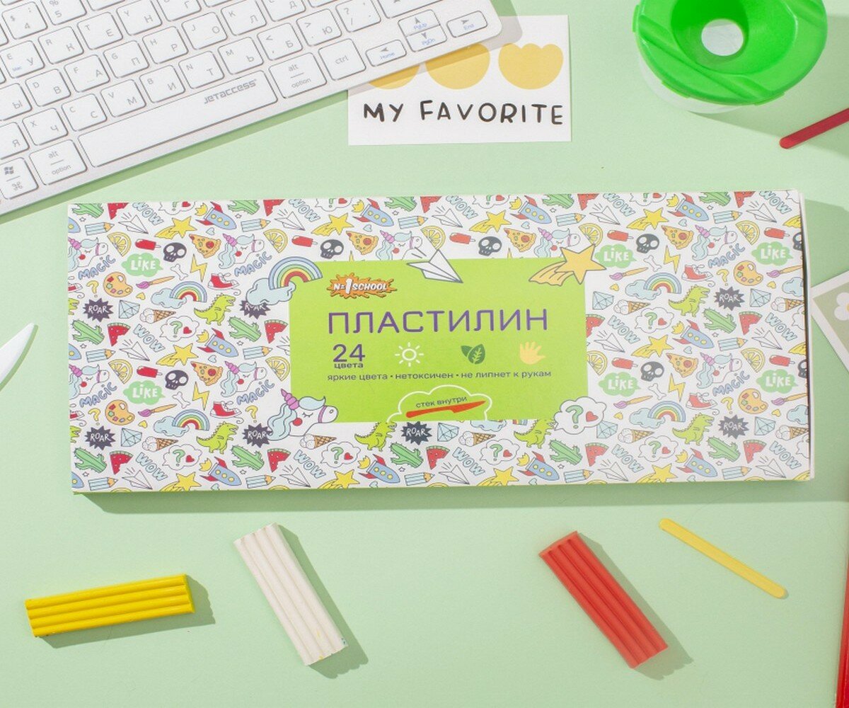 Пластилин №1 School Отличник, 24 цвета, 480 г со стеком интересное: