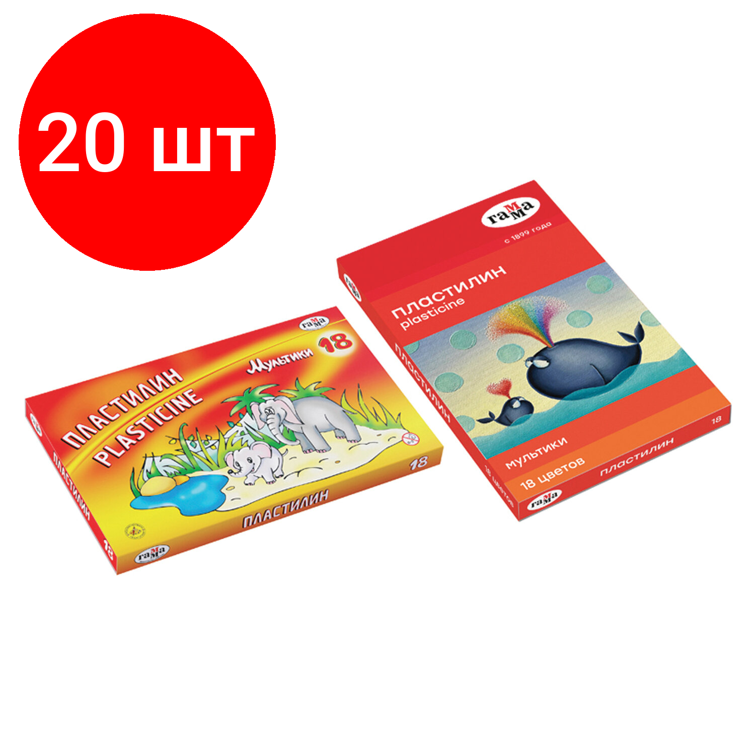 Купить Комплект 20 шт, Пластилин Гамма "Мультики", 18 цветов, 360г, со стеком, картон. упаковка