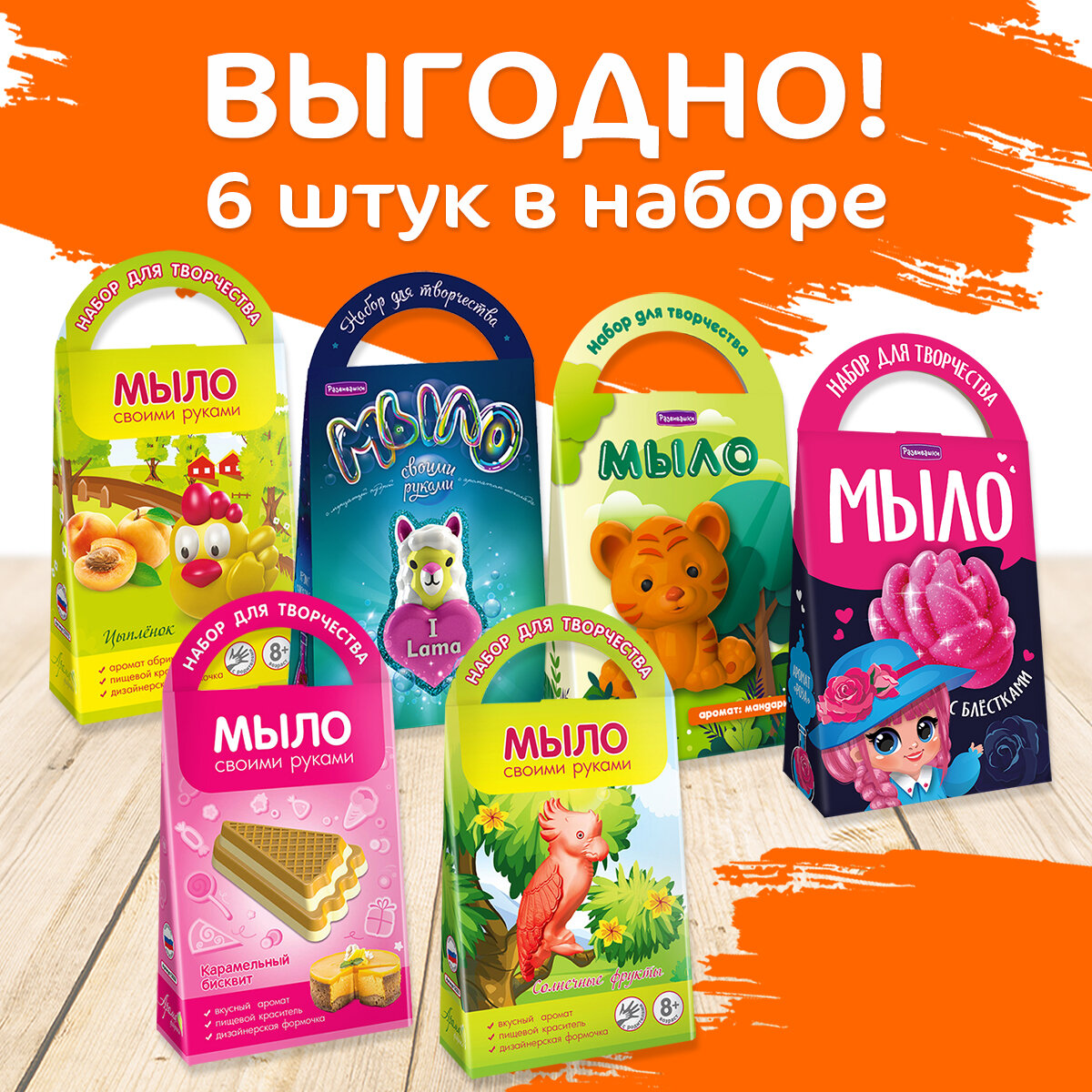 | Комплектация | 6 разных наборов для мыловарения |
