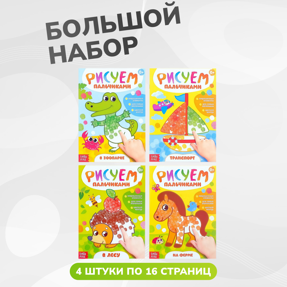 Набор раскрасок "Рисуем пальчиками", 4 штуки по 16 страниц, на мелкую моторику, для детей и малышей интересное: