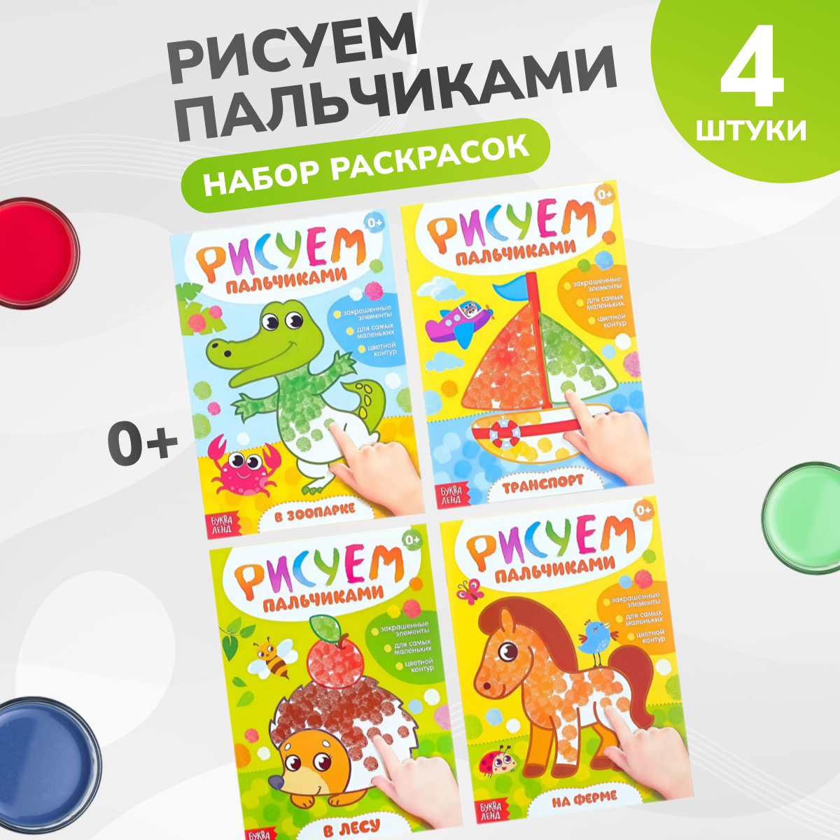 Купить Набор раскрасок "Рисуем пальчиками", 4 штуки по 16 страниц, на мелкую моторику, для детей и малышей