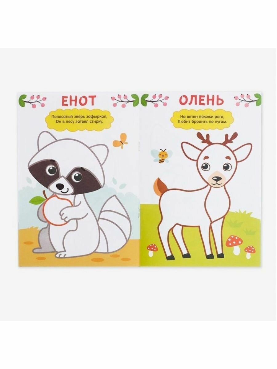 Раскраска "Лес" Рисуем пальчиками, с загадками, 16 стр, БУКВА-ЛЕНД