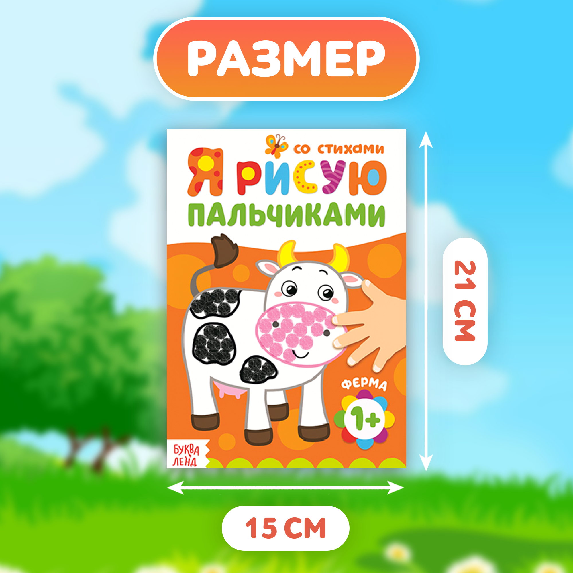 Раскраска буква-ленд "Ферма" Рисуем пальчиками, 1+, со стихами, 16 стр.