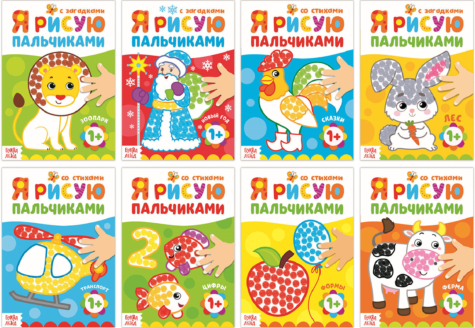 Раскраски набор "Рисуем Пальчиками" 1+, 16 стр, 8 шт, БУКВА-ЛЕНД