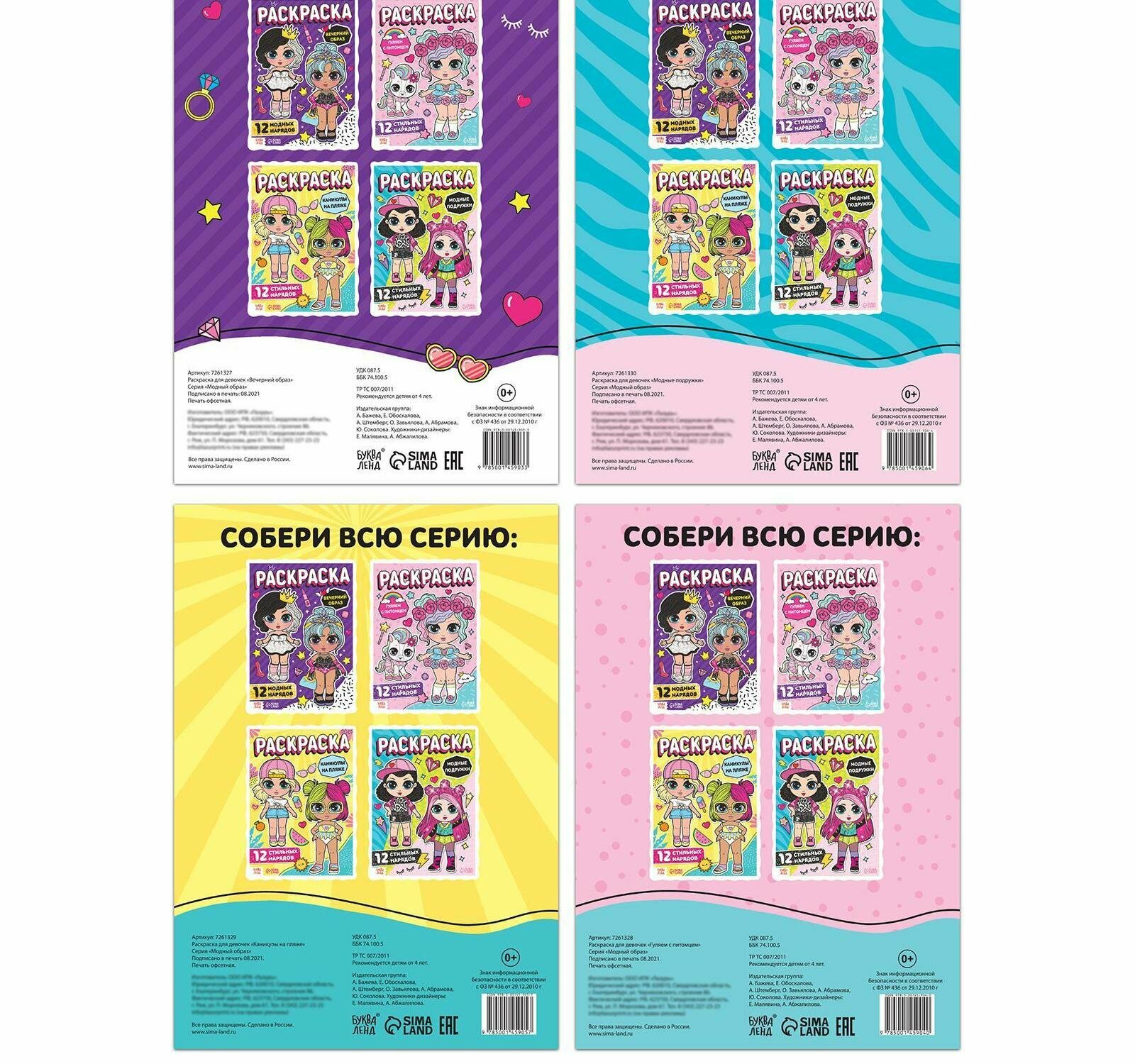 | Комплектация | 4 раскраски А4 по 16 страниц |