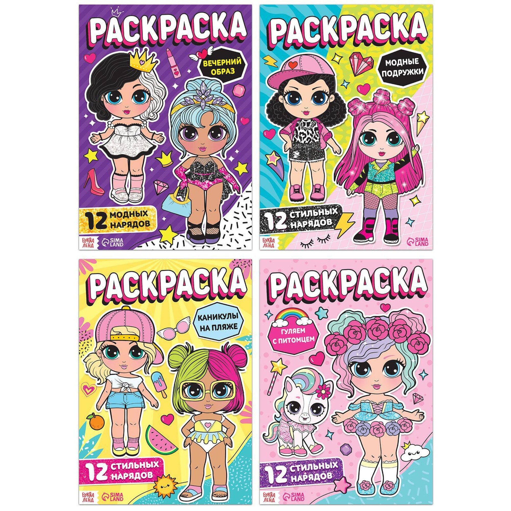 Купить Набор раскрасок для девочек "Стильные девчонки", 4 шт. по 16 стр., формат А4