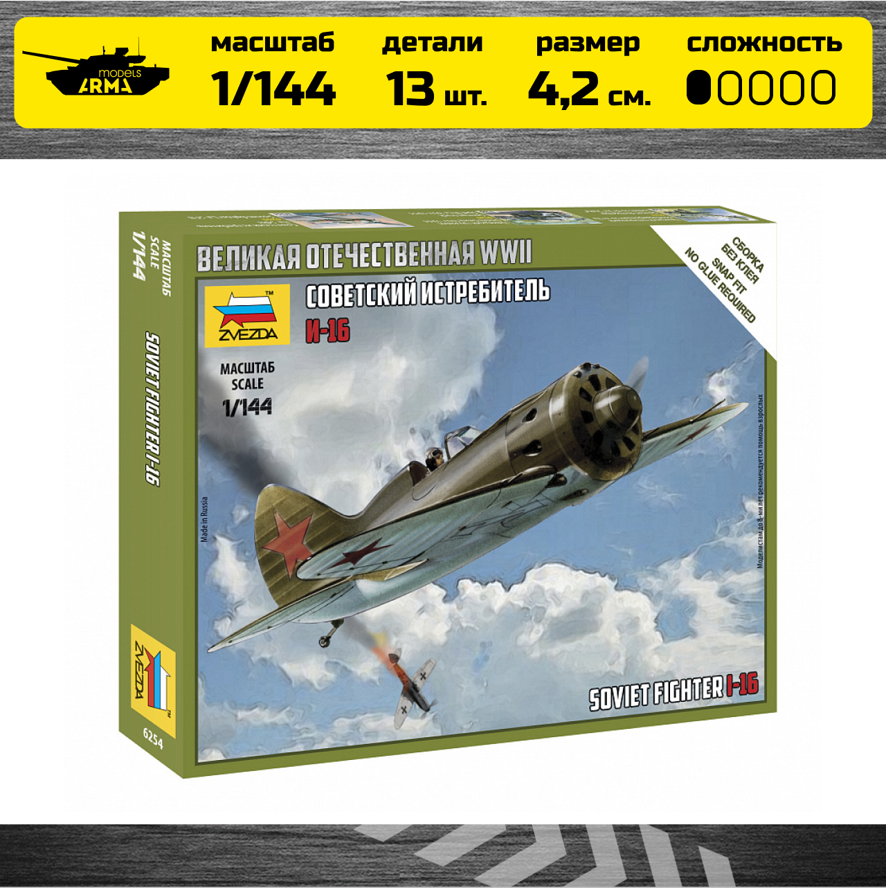 Сборная модель Звезда Советский истребитель И-16, 1/144 6254