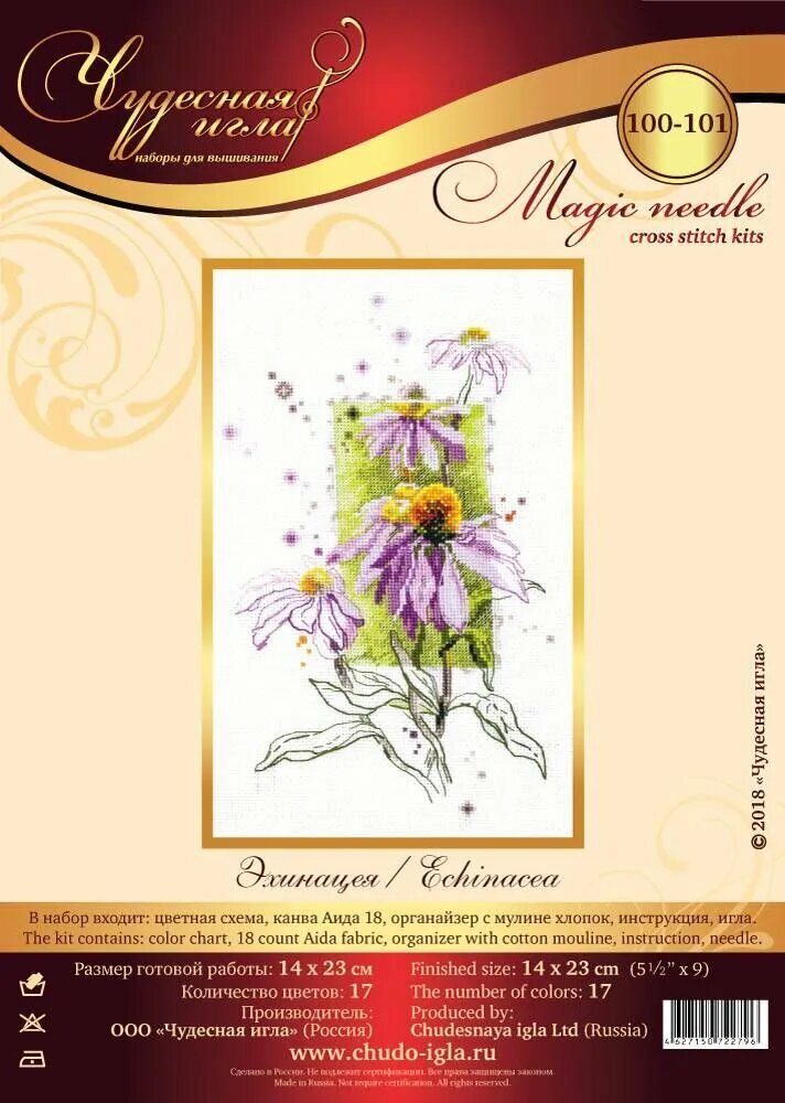 Набор для вышивания Чудесная Игла 100-101 "Эхиноцея" 14*23см интересное: