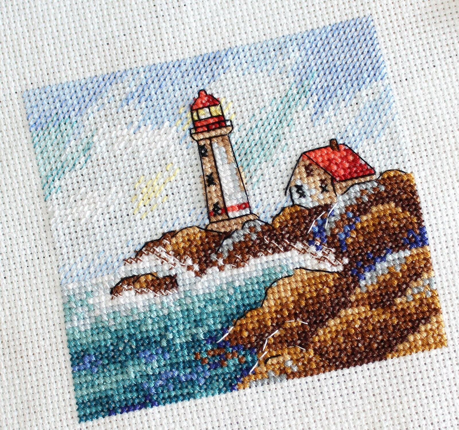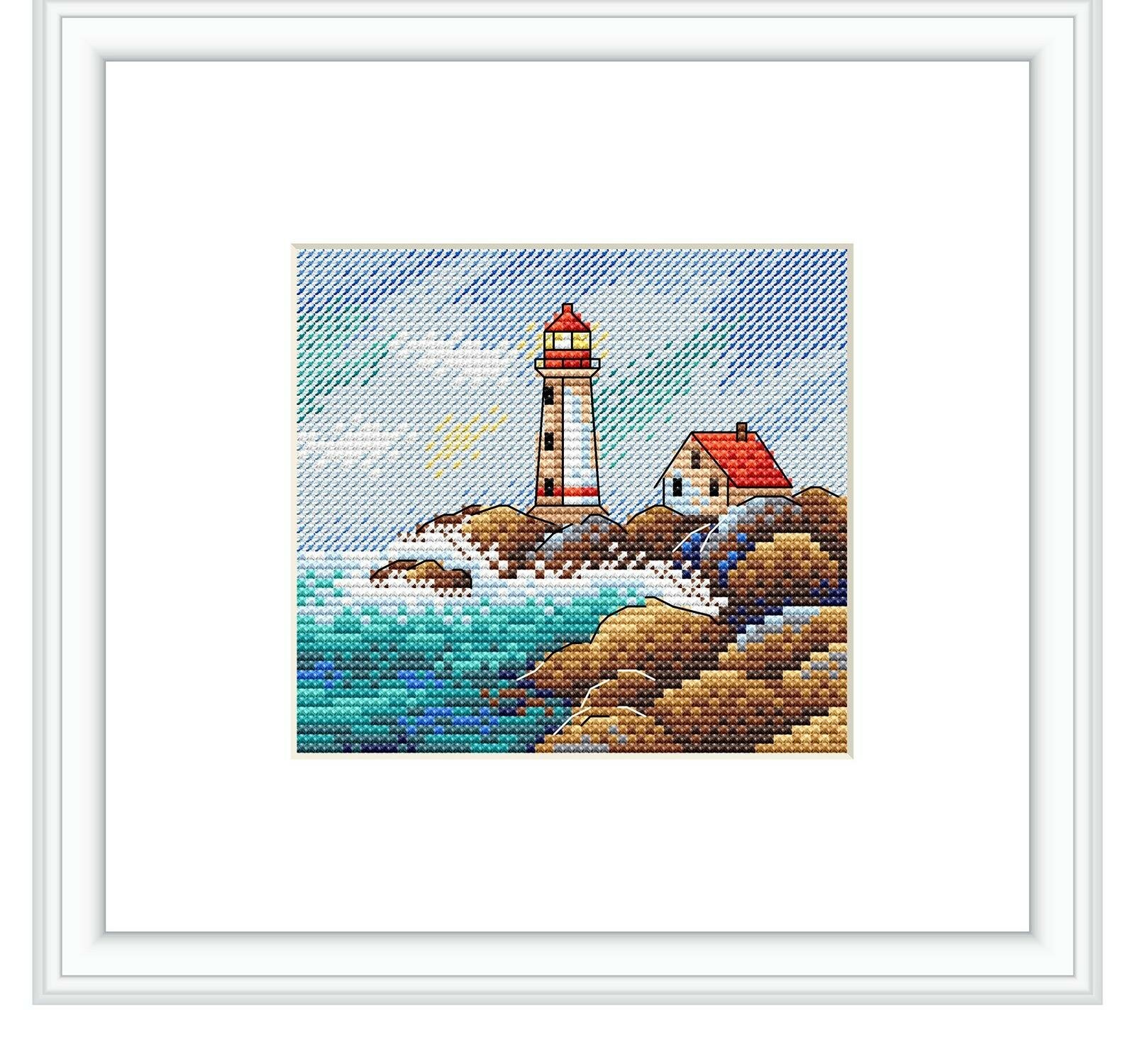 Набор для вышивания крестиком МП Студия 'Морской пейзаж', 10*11 см, на белой канве