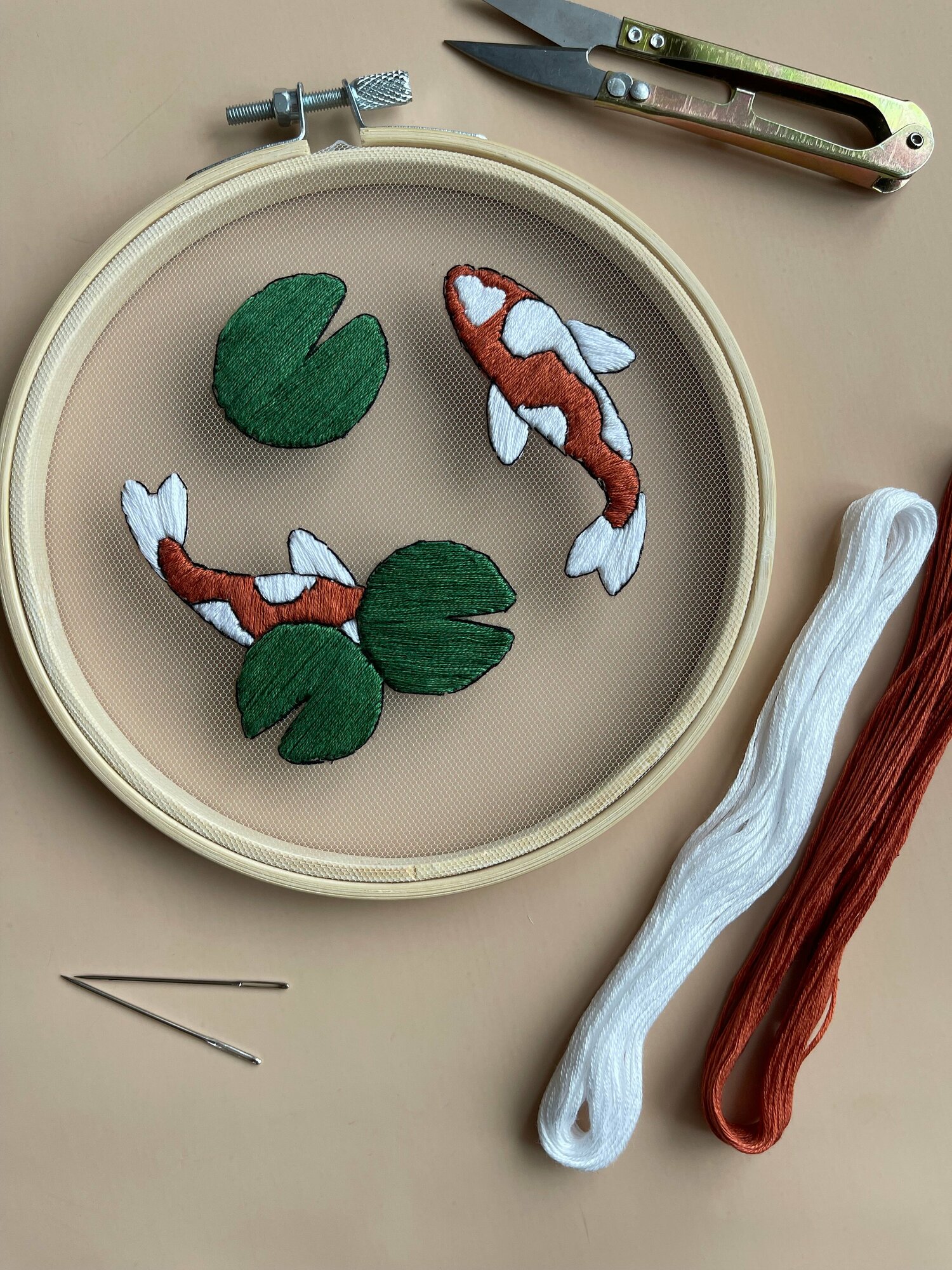 Набор для вышивания на сетке гладью "Рыбы" интересное: