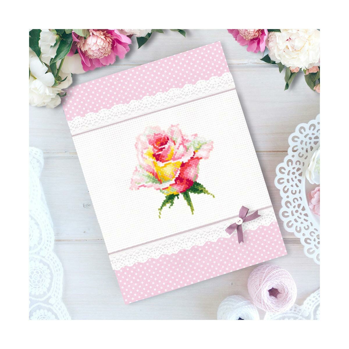 Набор для вышивания крестом "Розовая роза" 11 х 11 см "Чудесная Игла"