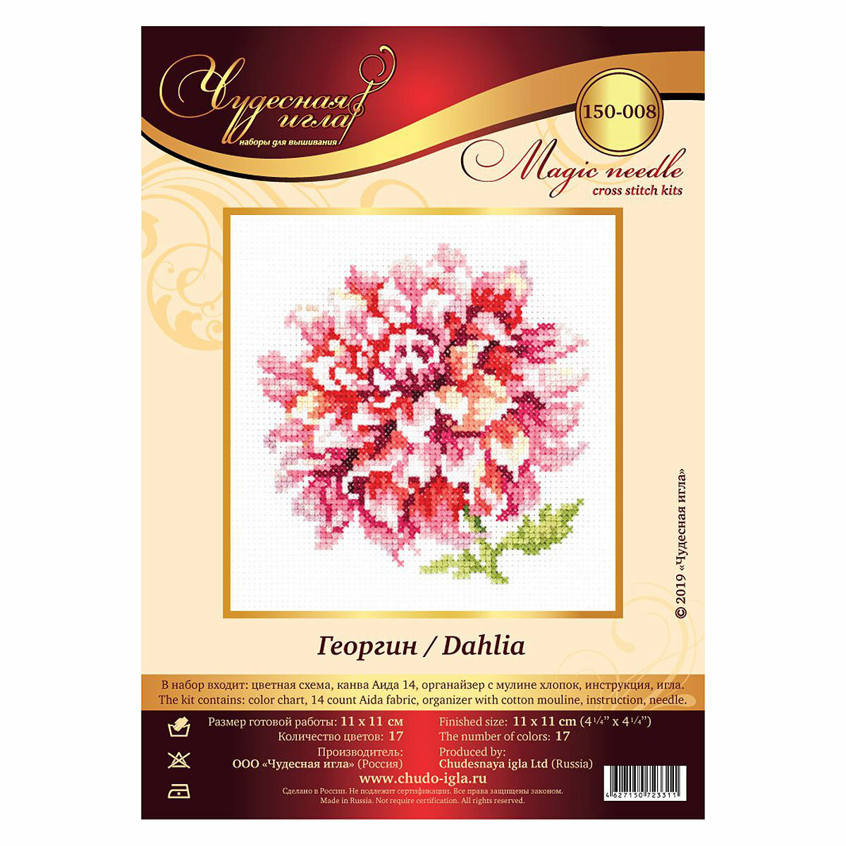 150-008 "Георгин". Набор для вышивания крестом Чудесная игла 11 х 11 см.
