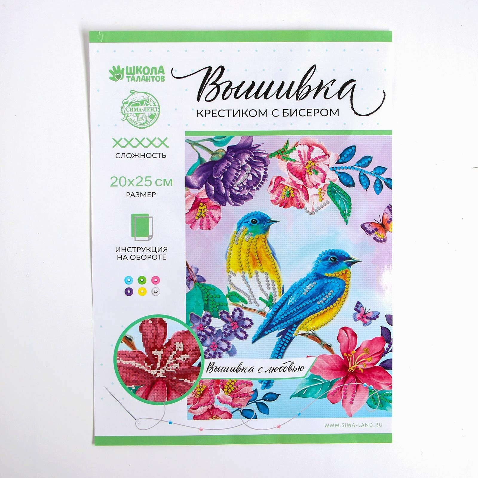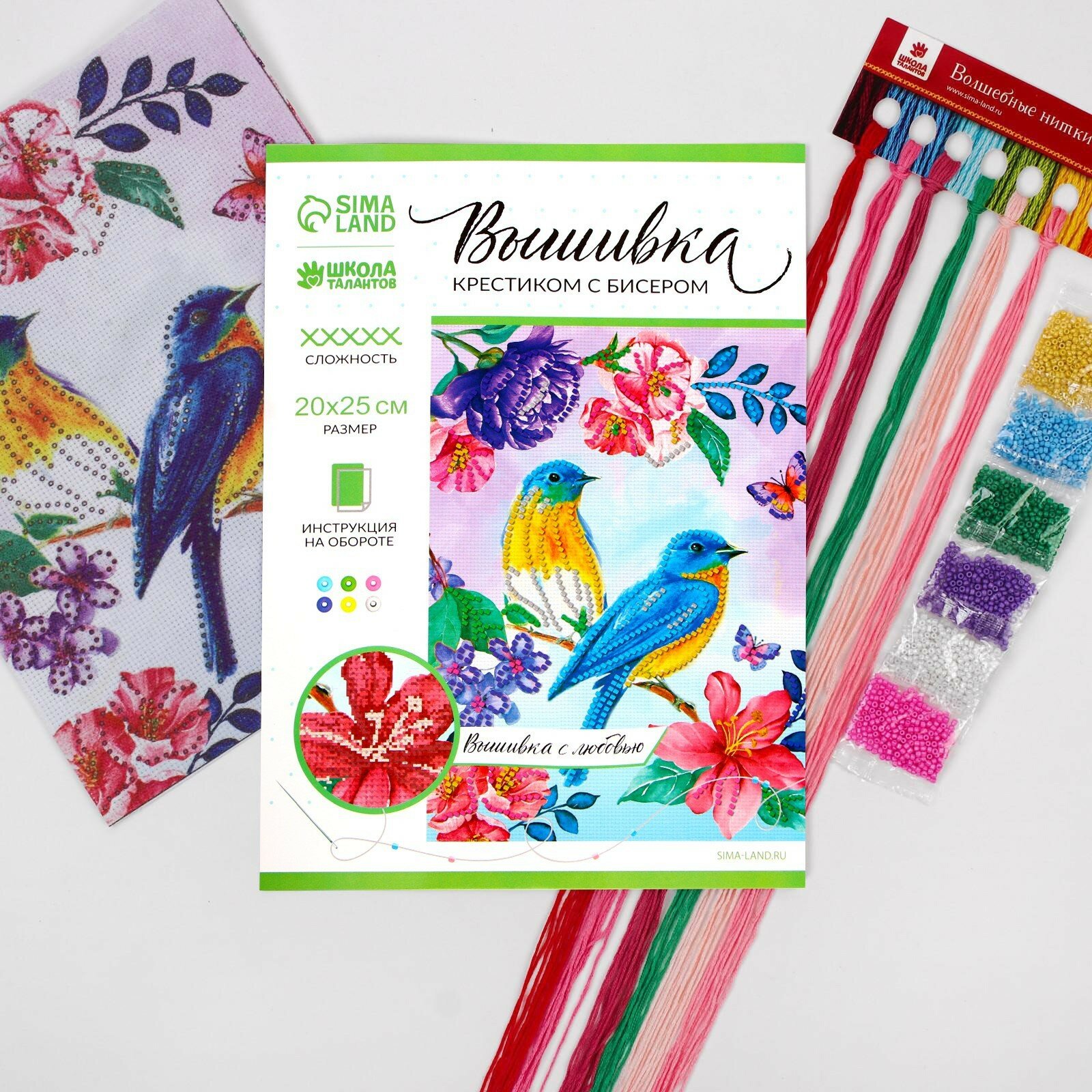 Вышивка крестиком с бисером "Птицы", набор для творчества, 20 х 25 см