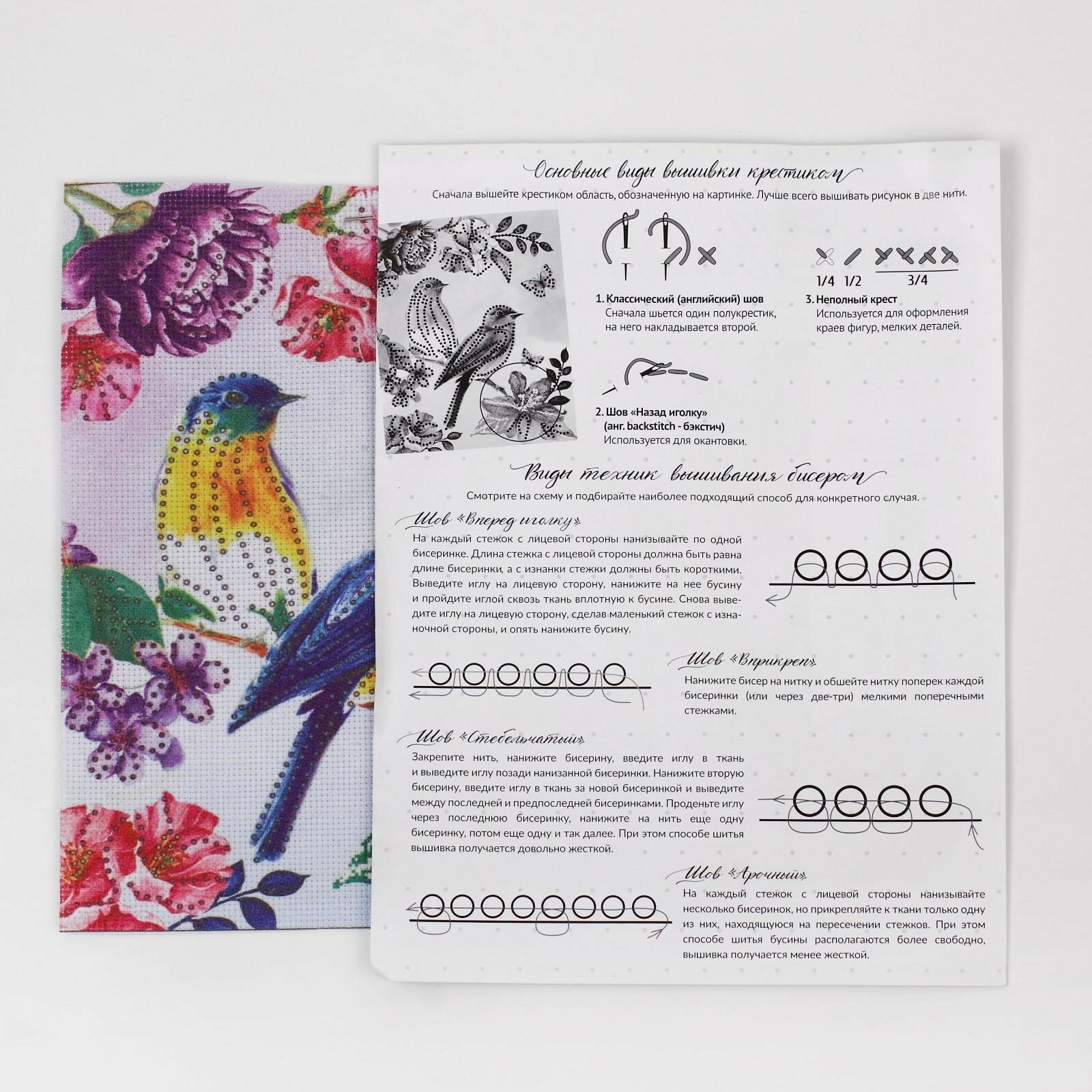 | Комплектация | нитки мулине, бисер, канва, игла для ниток, игла для бисера, инструкция |