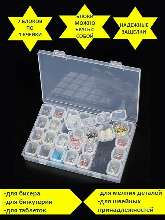 Купить Органайзер для мелочей / бокс / 28 ячеек / для бисера / для страз / для бусин / таблетница