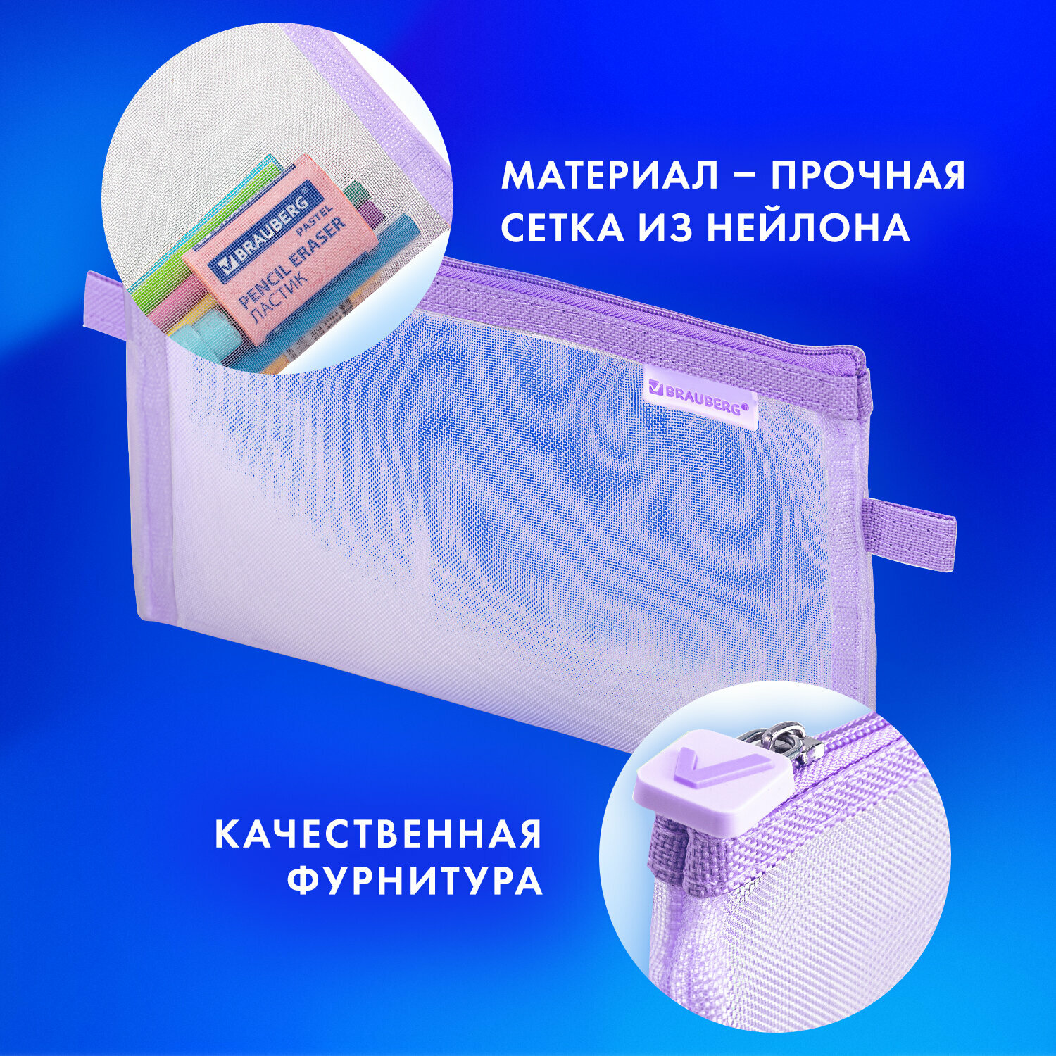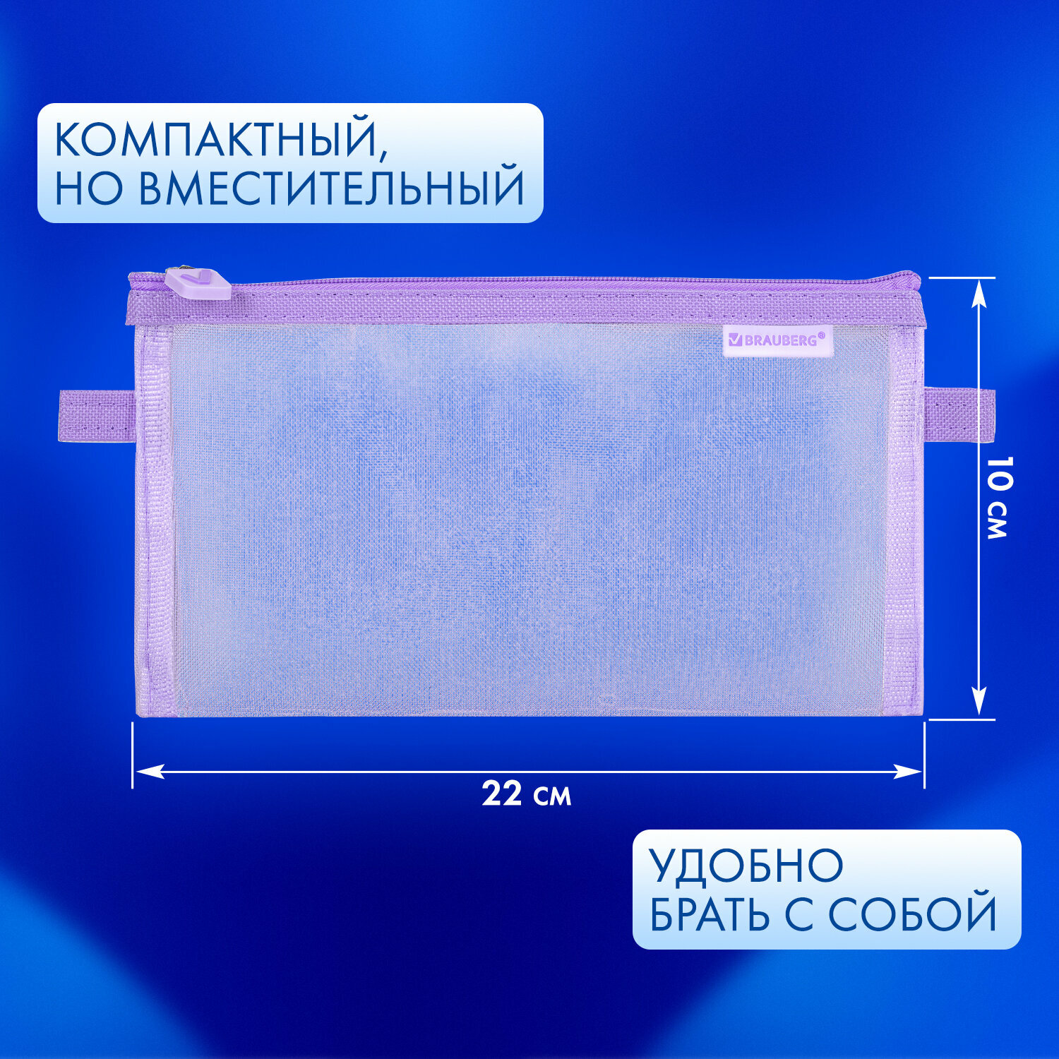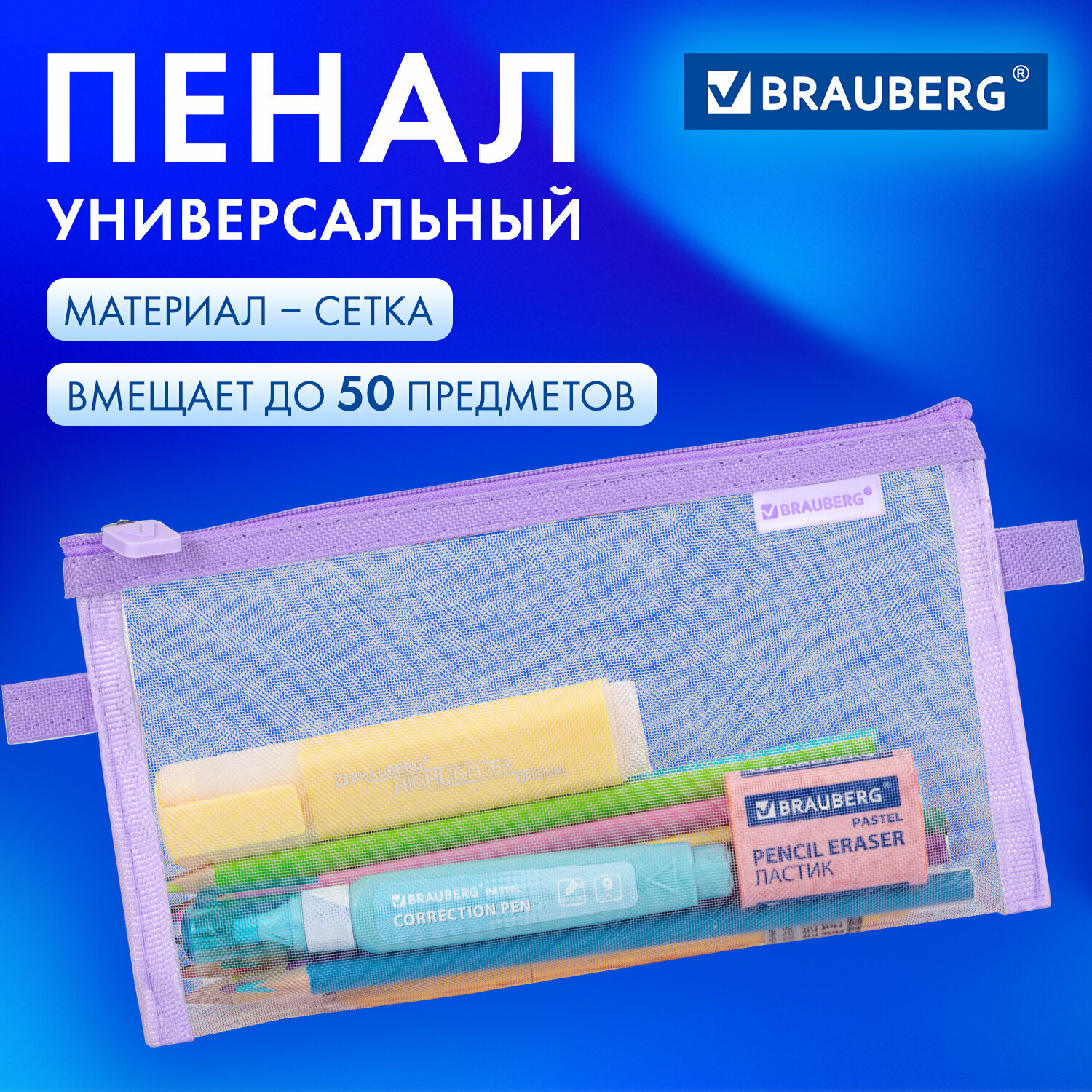 Пенал-конверт Brauberg, сетка, 22x10 см, фиолетовый, 272239 интересное: