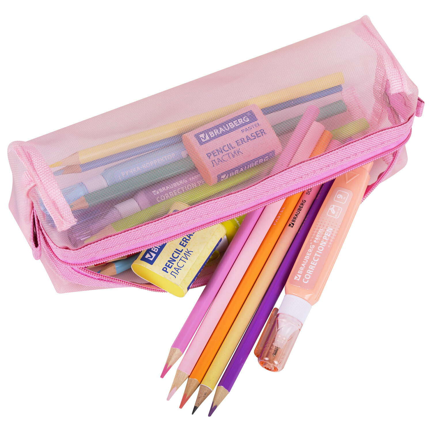 Купить Пенал-тубус Brauberg, сетка, 22х5х5 см, розовый, 272235