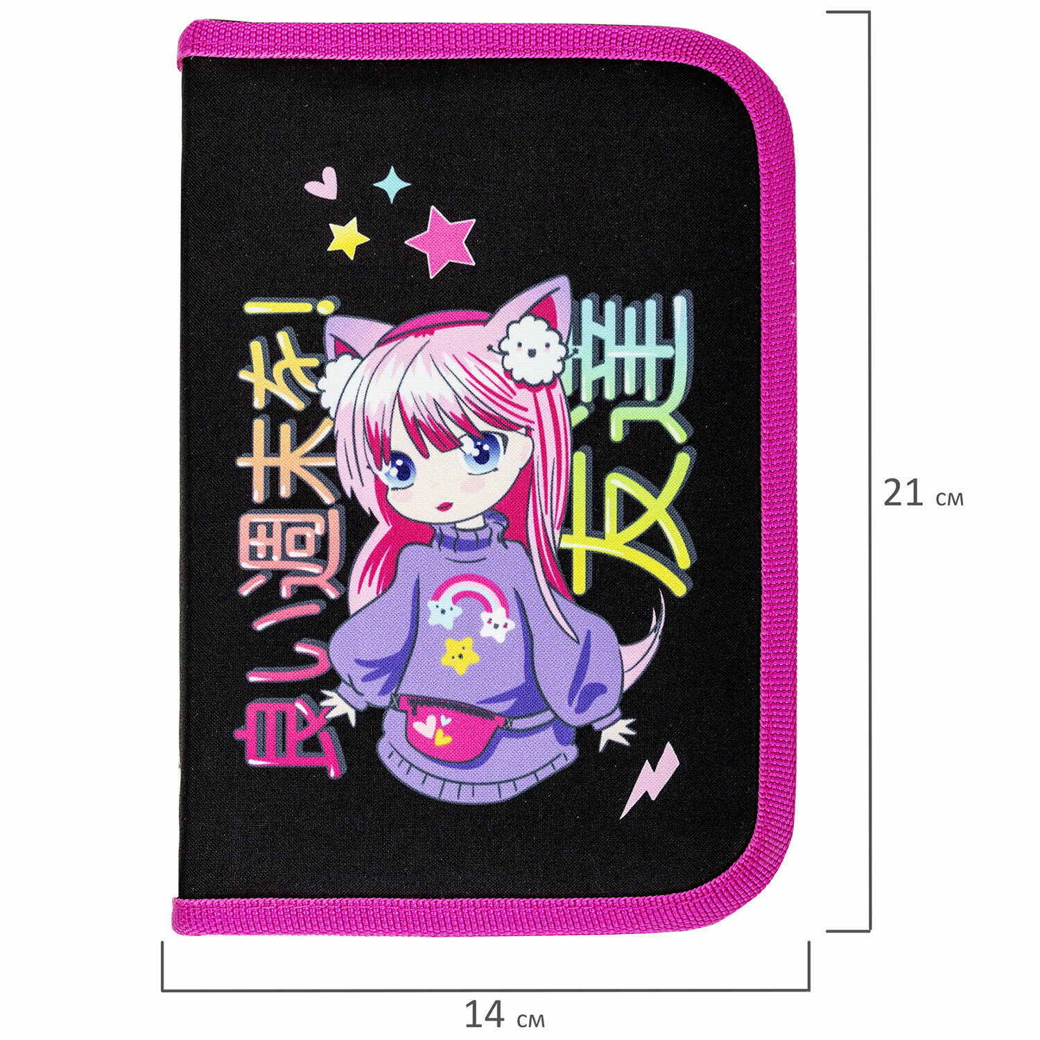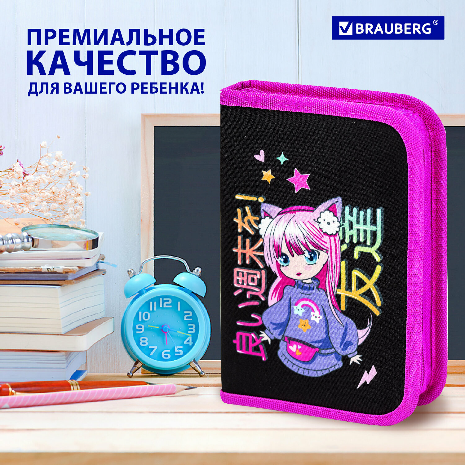 Купить Пенал Brauberg, 1 отделение, 1 откидная планка, полиэстер, 21х14 см, Anime girl, 272323
