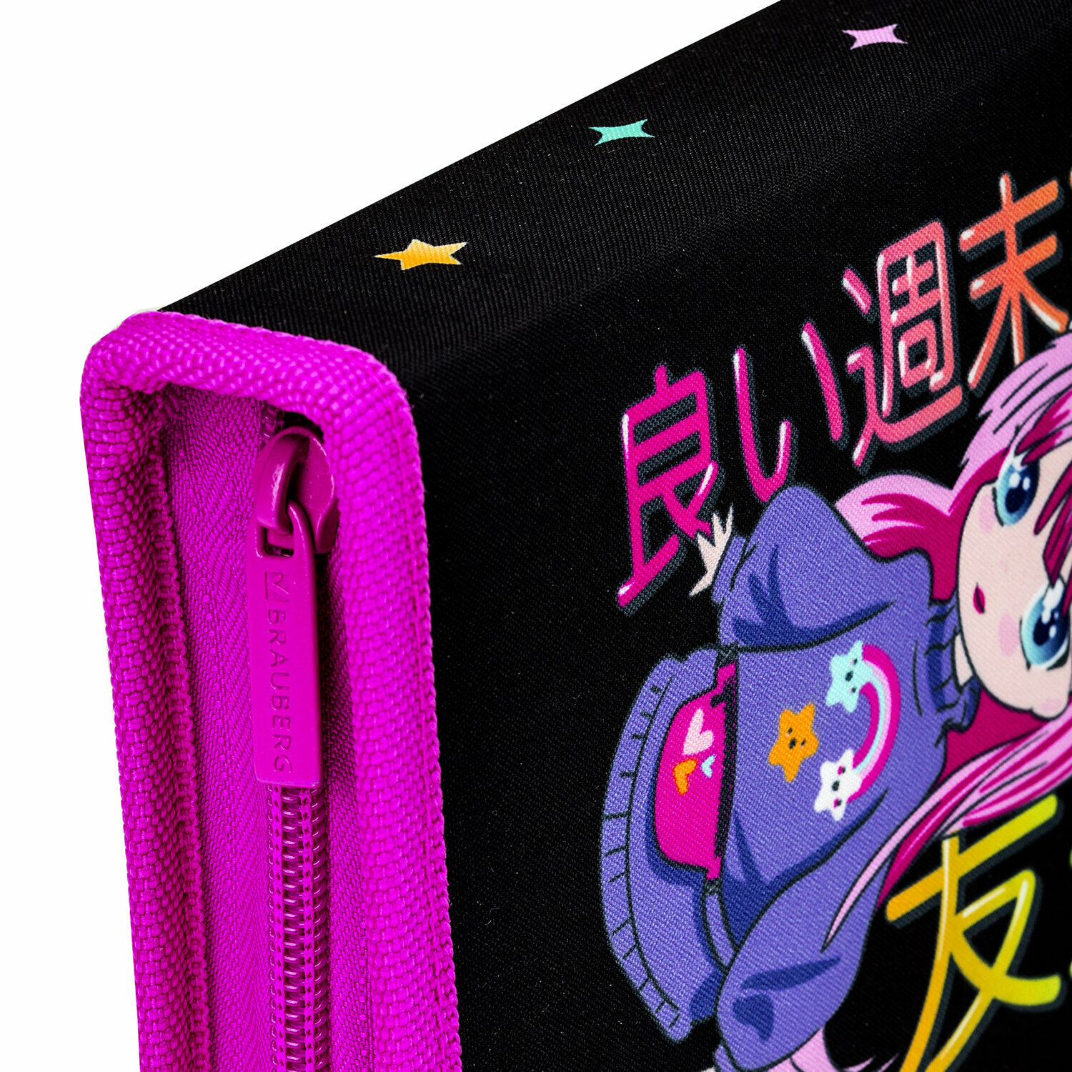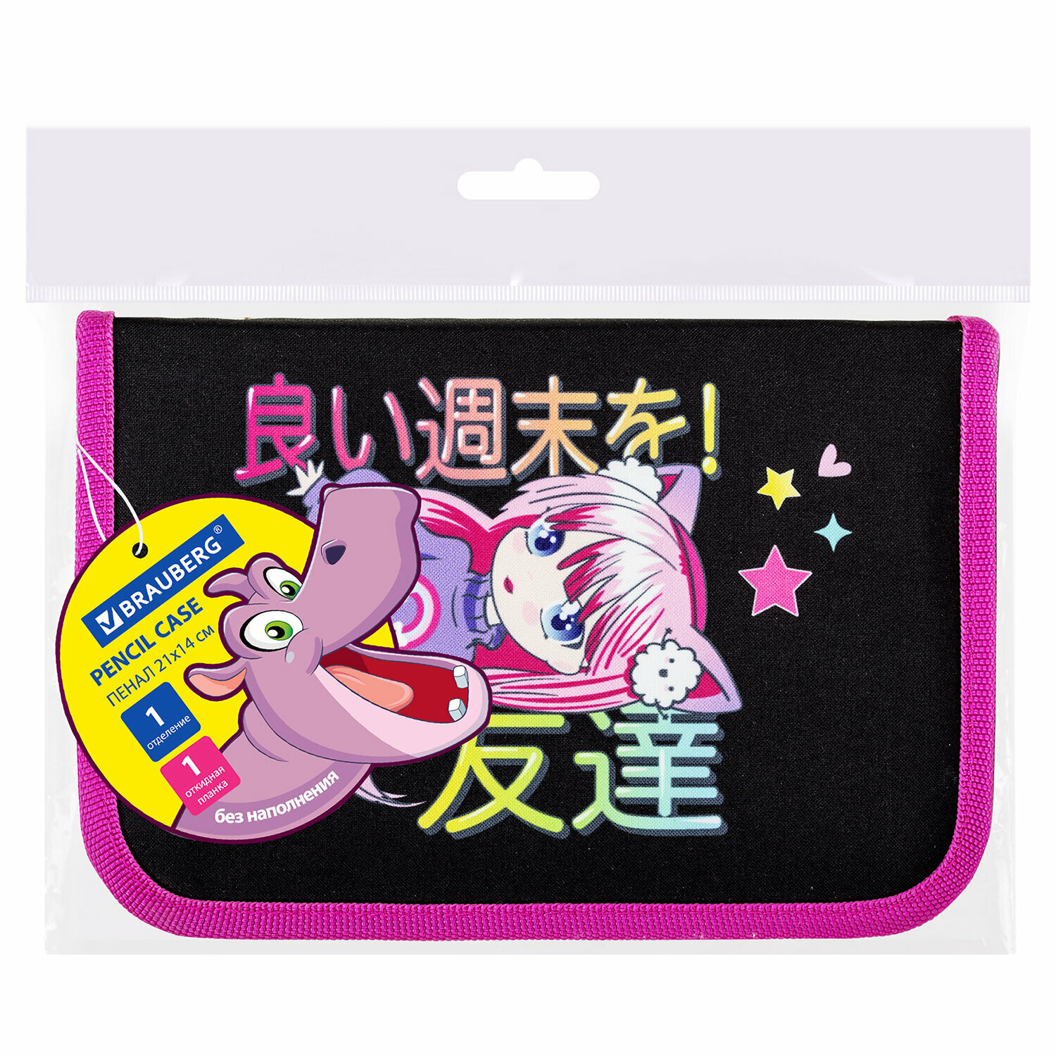 Пенал Brauberg, 1 отделение, 2 откидные планки, полиэстер, 21х14 см, Anime friends, 272319