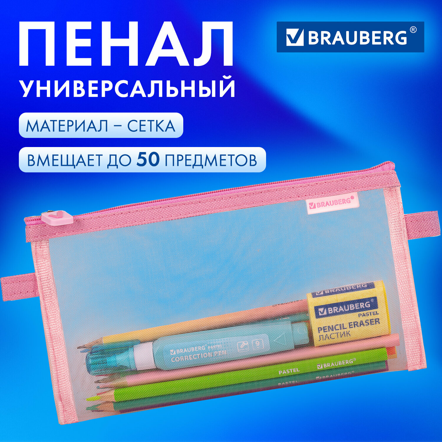 Купить Пенал-конверт Brauberg, сетка, 22x10 см, розовый, 272238