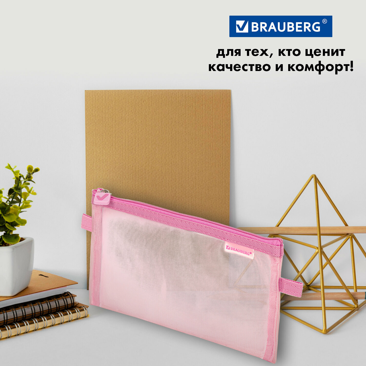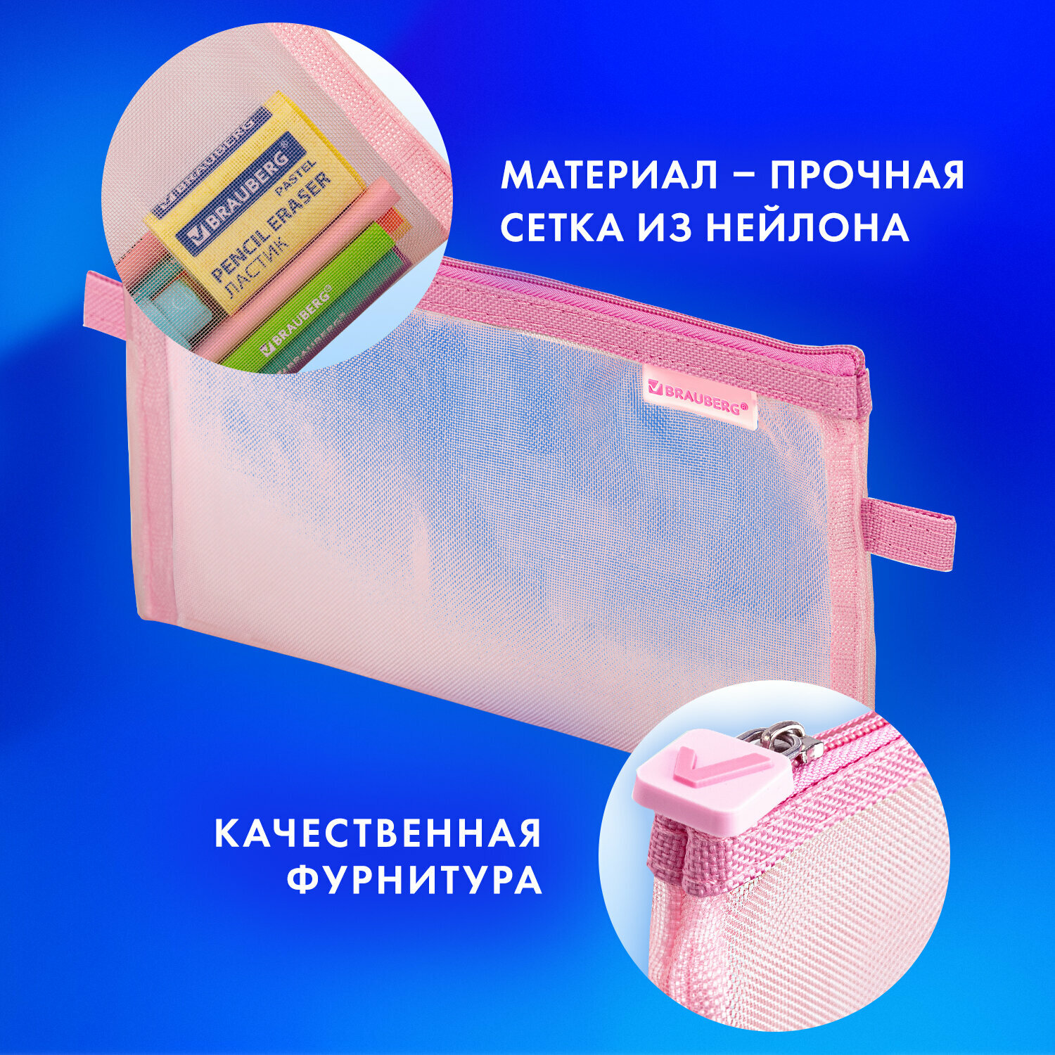 Пенал-конверт Brauberg, сетка, 22x10 см, розовый, 272238 интересное: