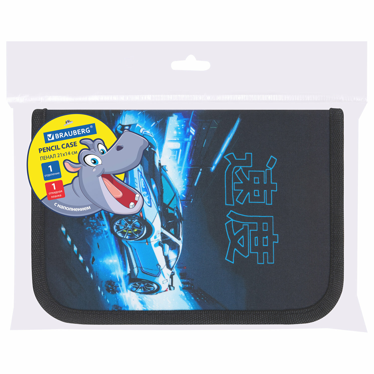 Пенал BRAUBERG с наполнением, 1 отделение, 1 откидная планка, 24 предмета, 21х14 см, "Night race", 272352