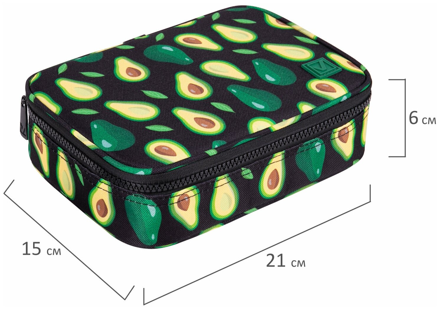 Купить Пенал-косметичка Brauberg, 1 отделение, 1 откидная планка, ткань, 21x15x6 см, Avocado, 270706