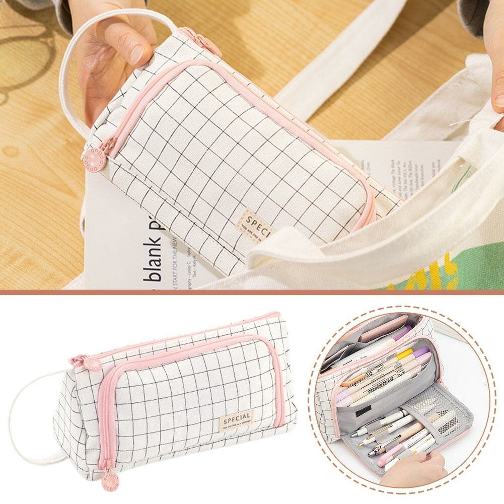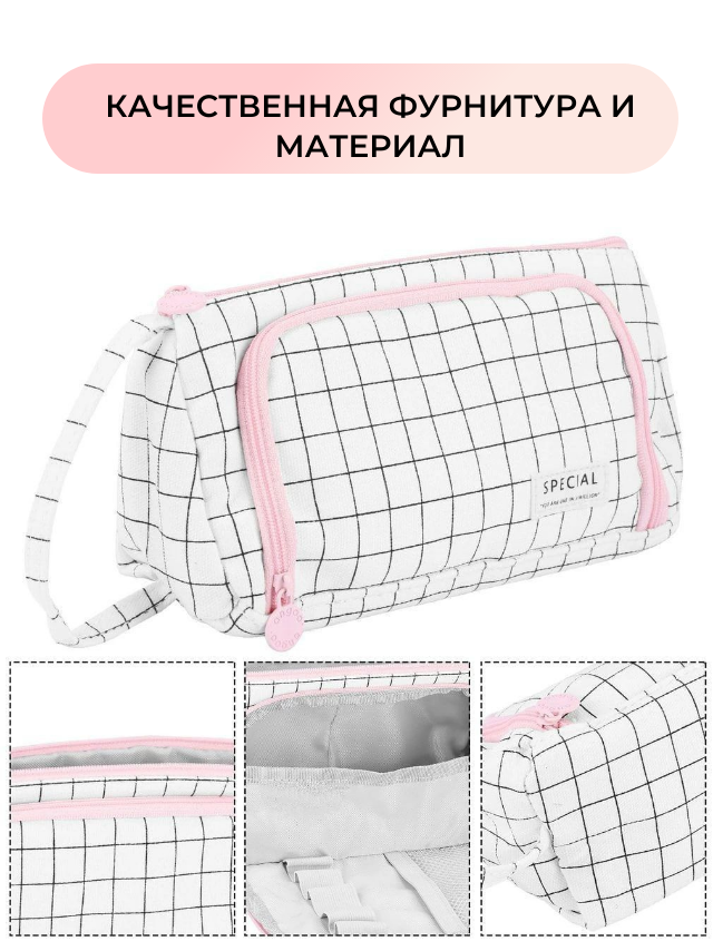 Пенал-косметичка школьный в клетку для девочек, студентов, аптечка, дорожная сумочка, цвет белый в клетку интересное: