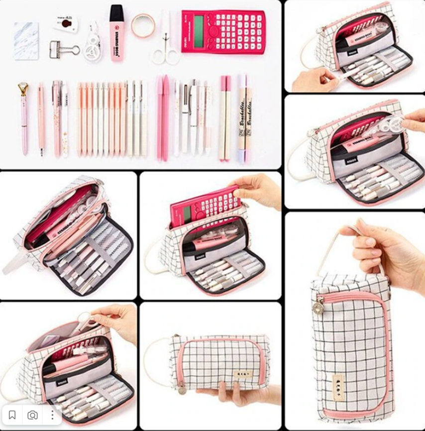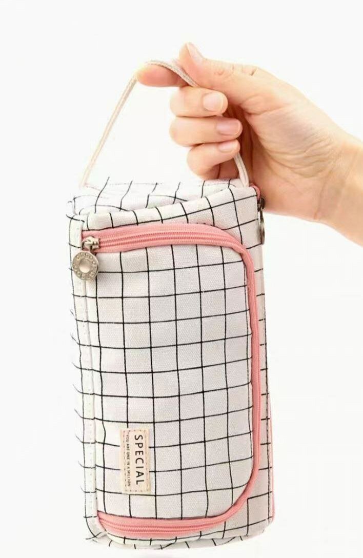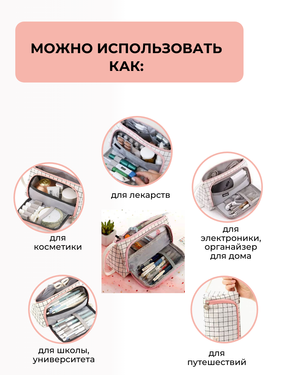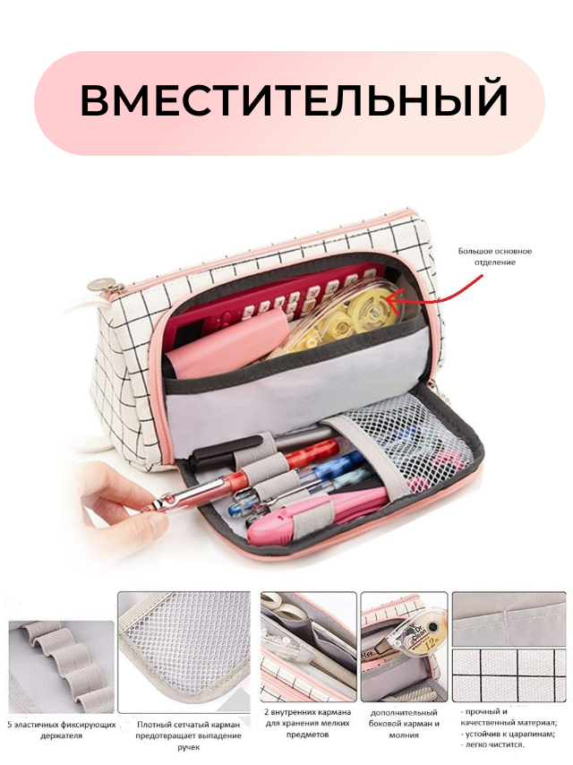 Пенал-косметичка школьный в клетку для девочек, студентов, аптечка, дорожная сумочка, цвет белый в клетку