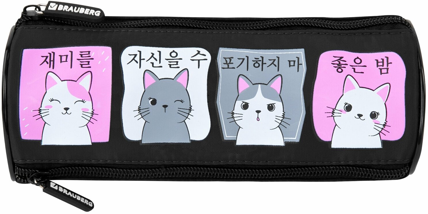 Пенал-косметичка школьный для ручек, карандашей Brauberg, 3 отделения, нейлон, 21х7х7см, Cat Band, 271580 интересное: