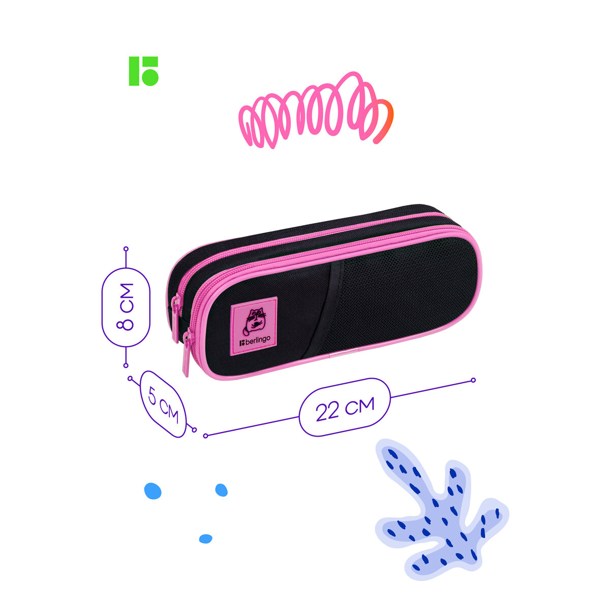 Пенал мягкий 2 отделения, 220*80*50 Berlingo "Chilled cat", полиэстер, внутренний органайзер интересное:
