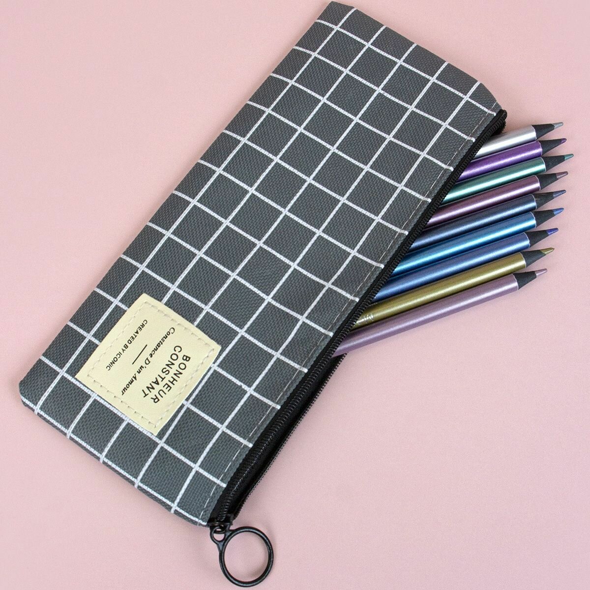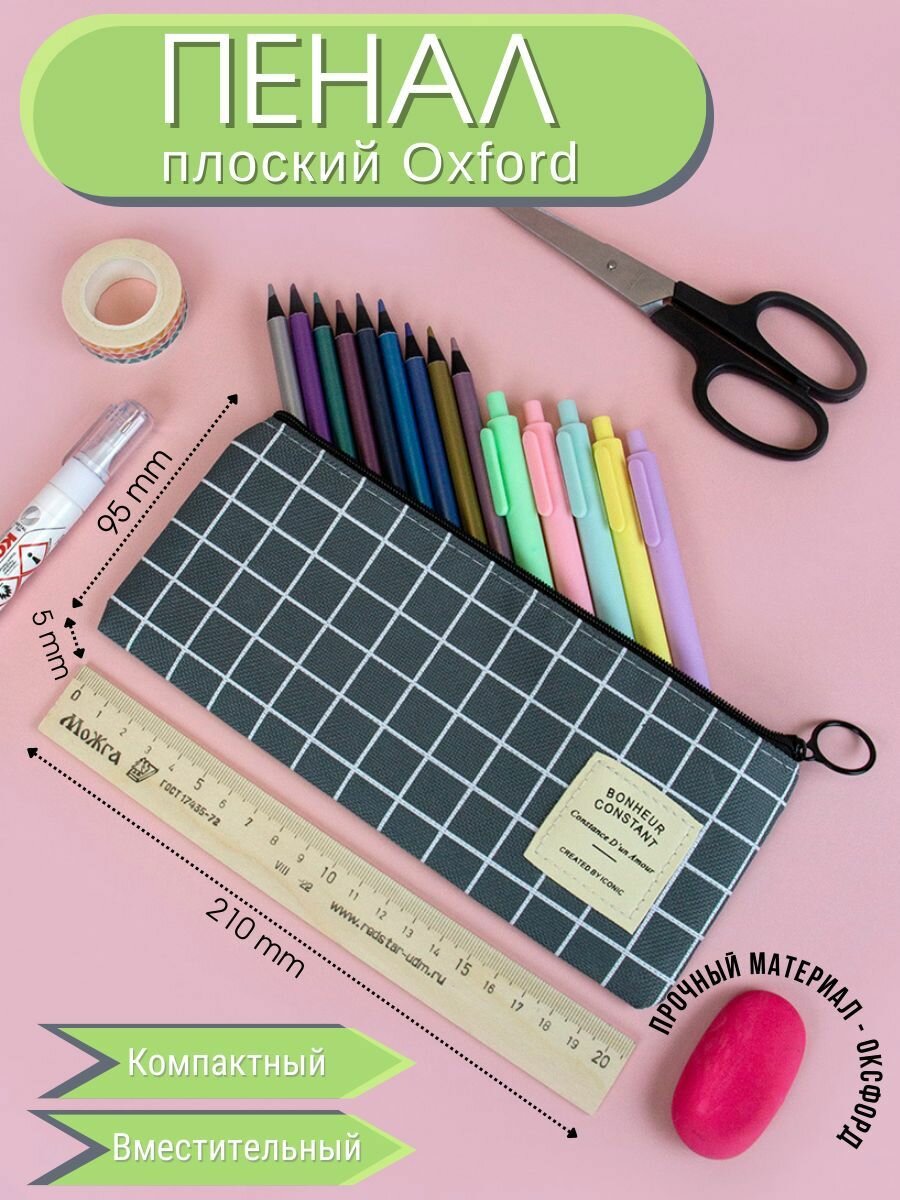 Пенал нейлон Bonheur Constant, Пенал-косметичка из ткани Оксфорд - Серая клетка интересное: