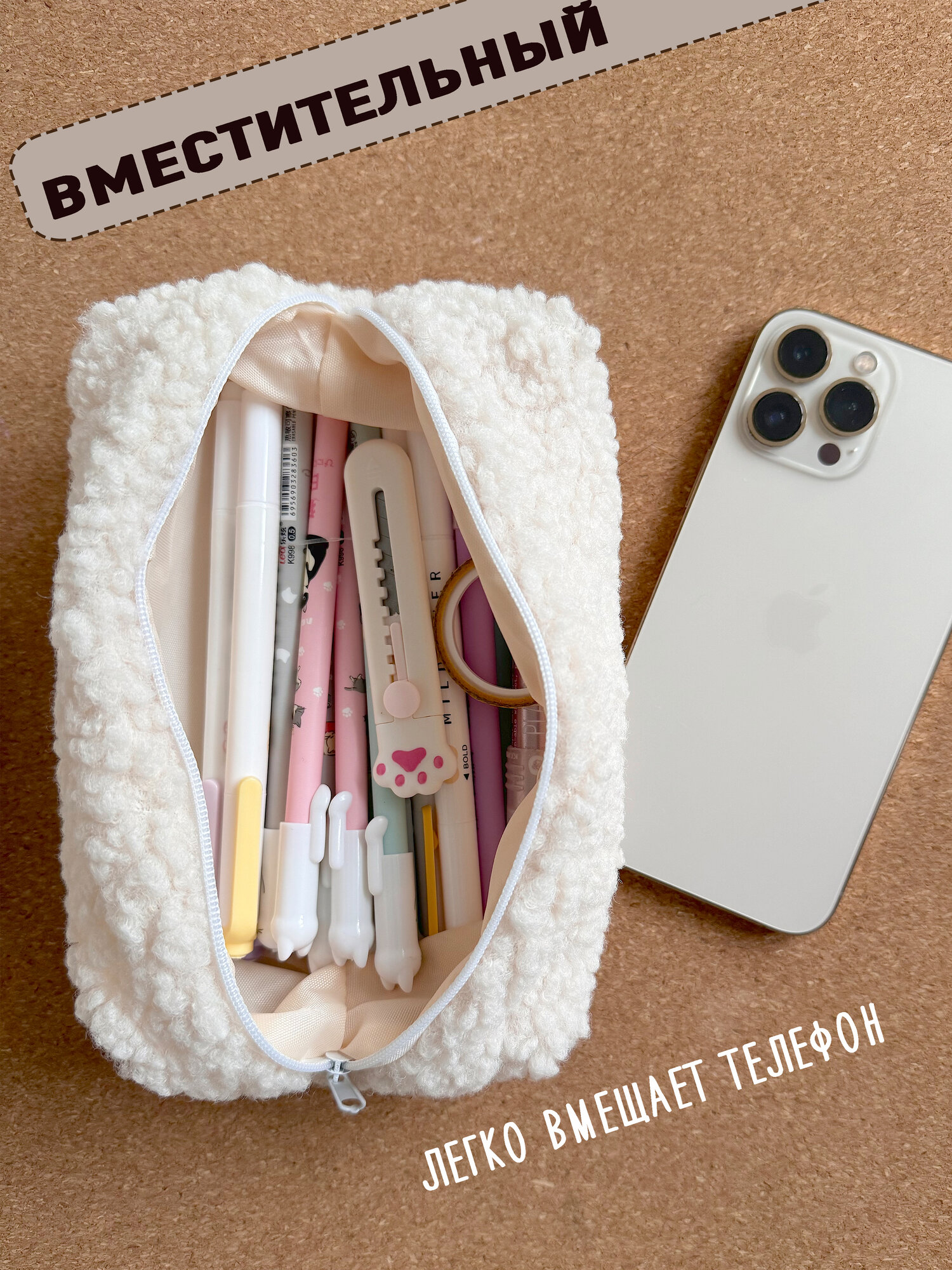 Пенал-косметичка школьный прикольный плюшевый "няшный" интересное: