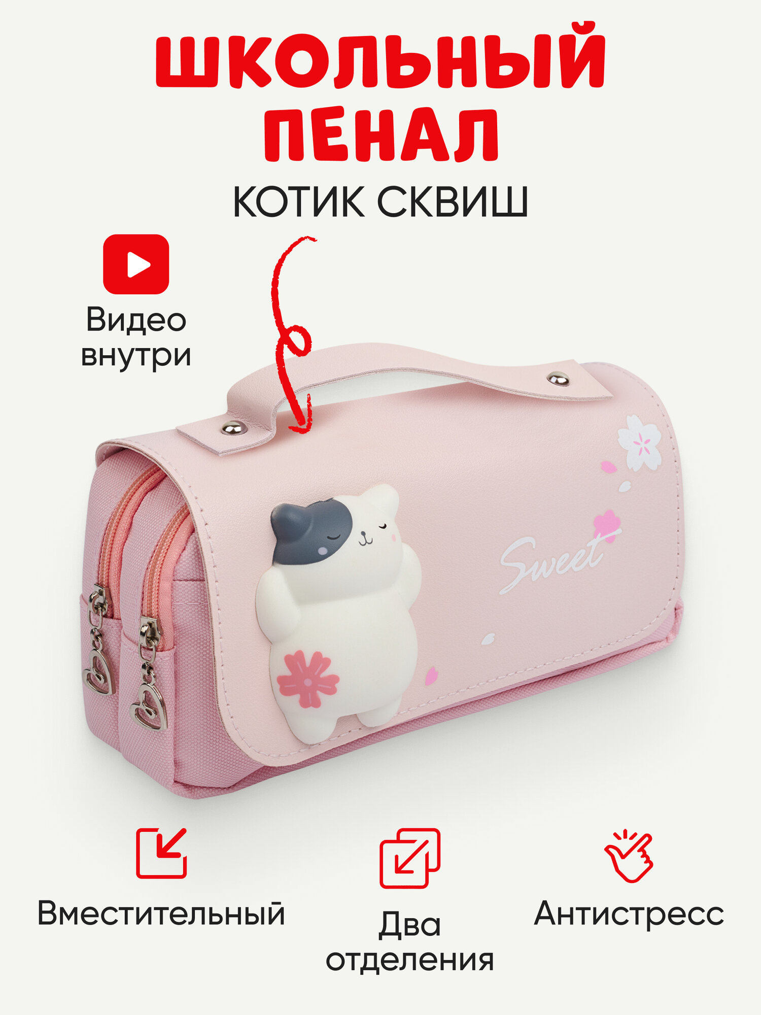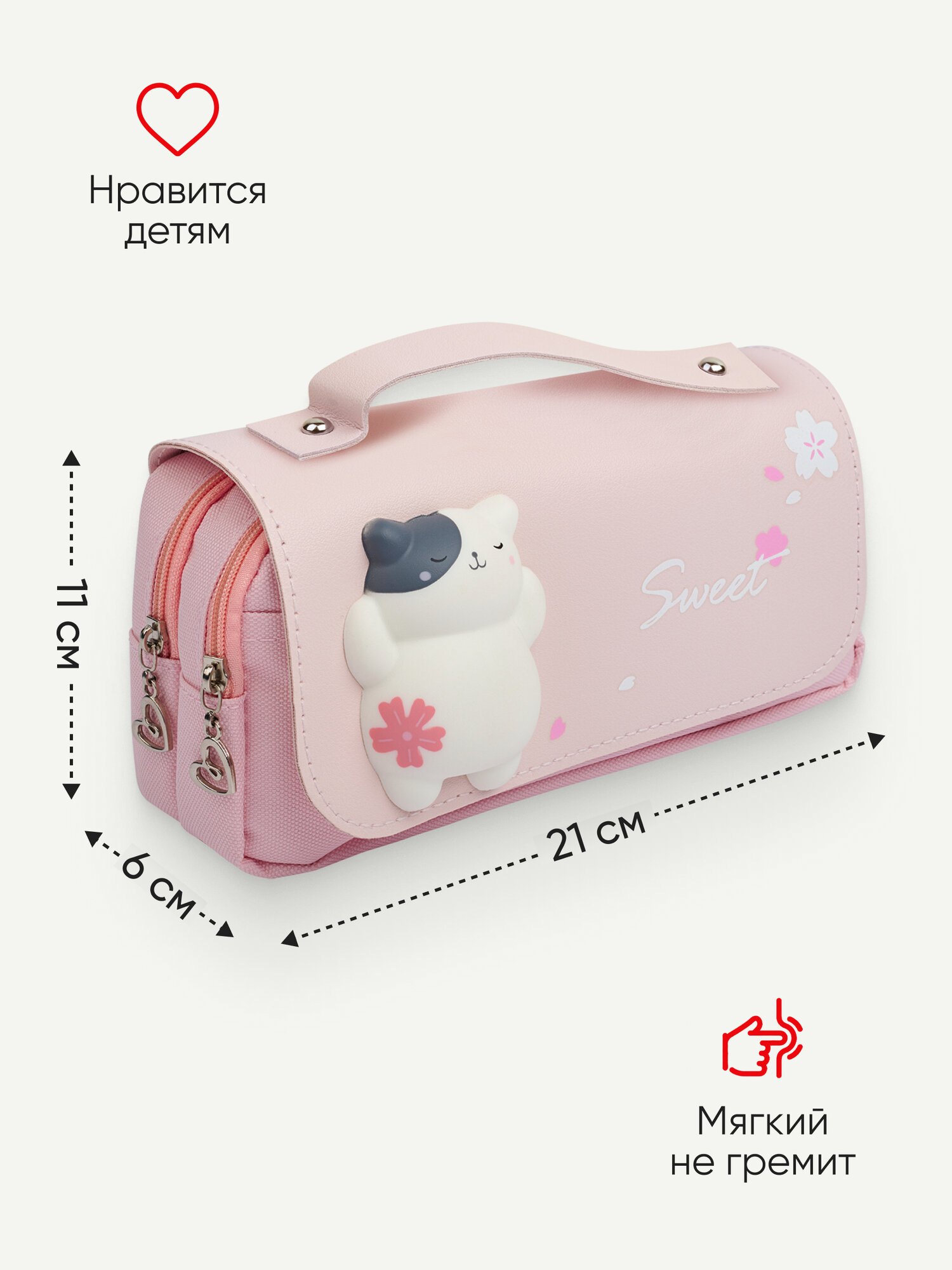 Пенал Amoru с котиком сквиш розовый интересное: