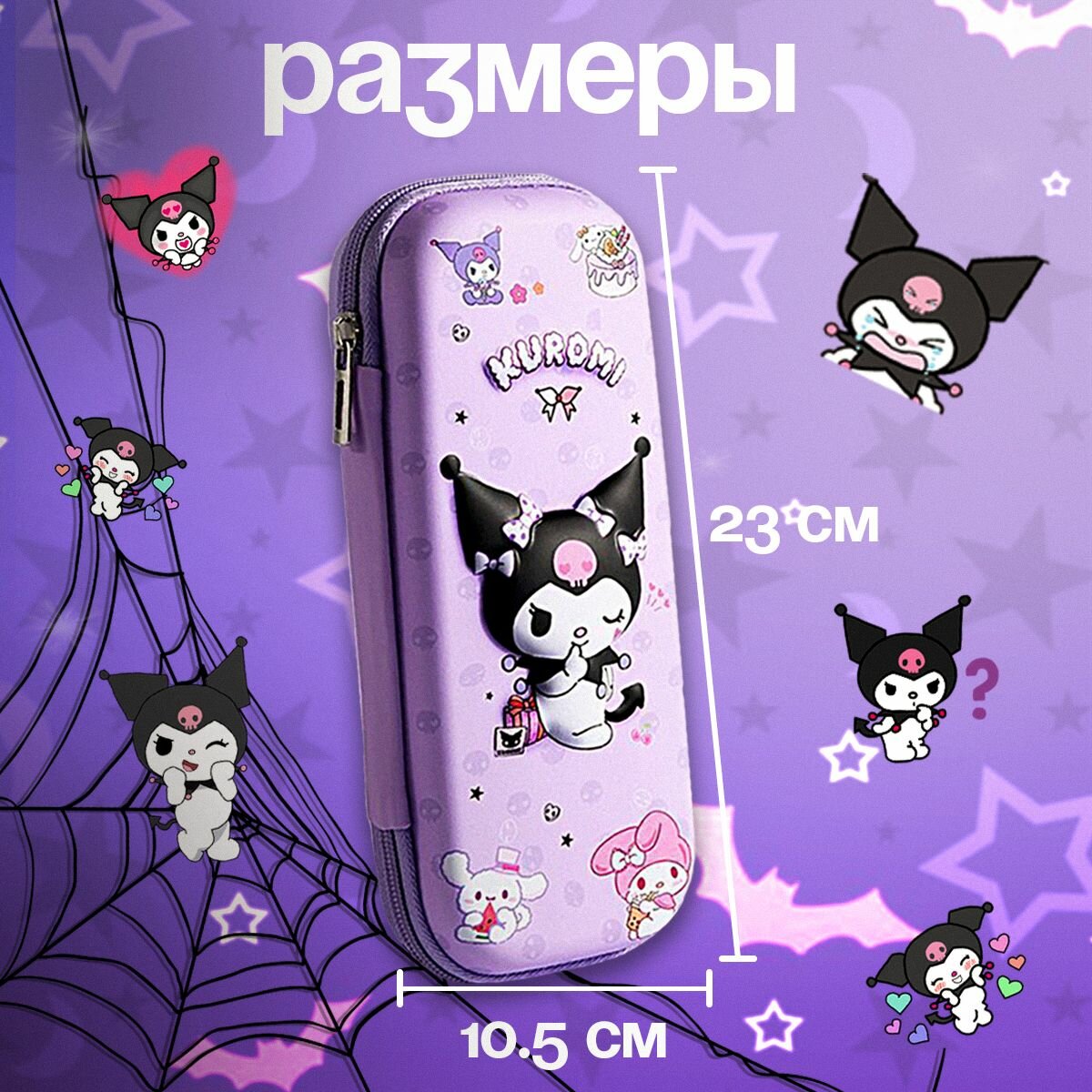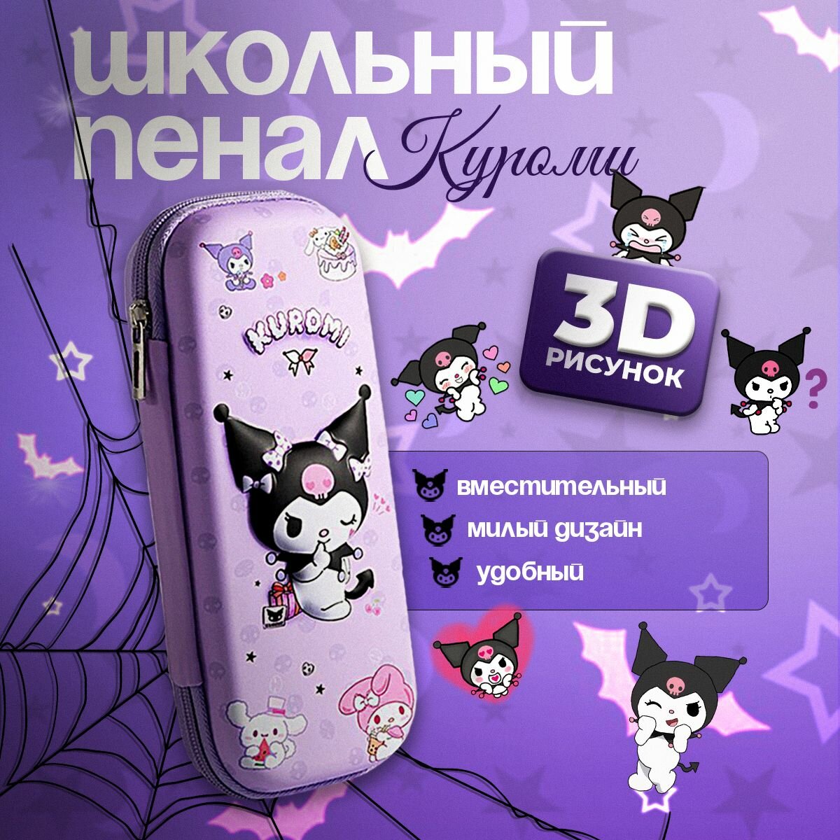 Купить Пенал школьный Kuromi 3D антистресс сиреневый для девочек сквиш Hello Kitty Куроми (без наполнения)