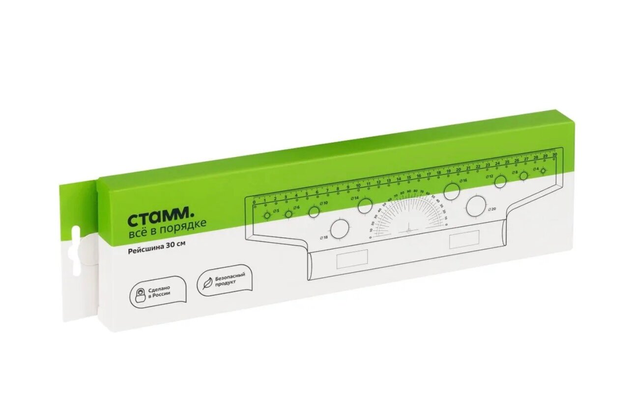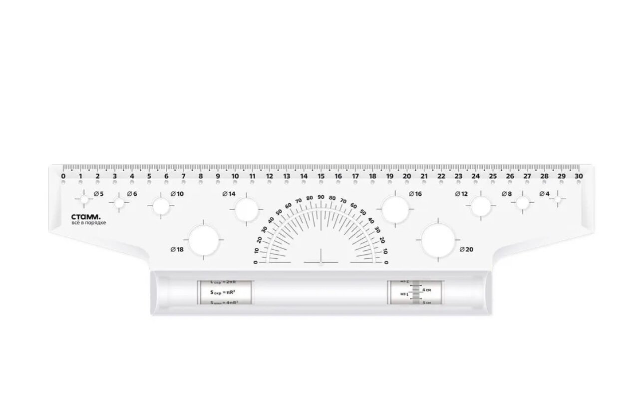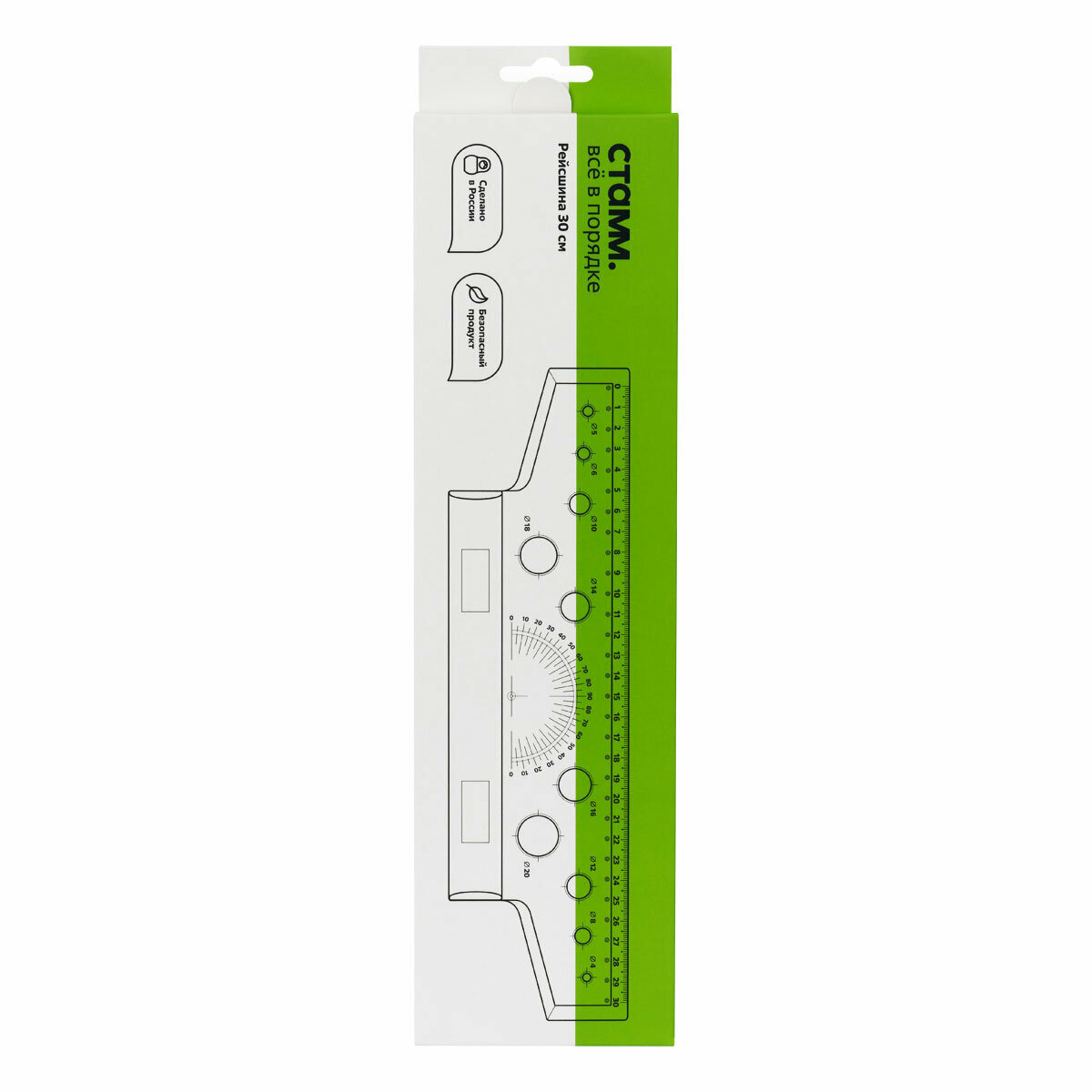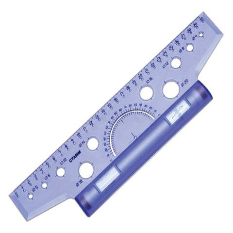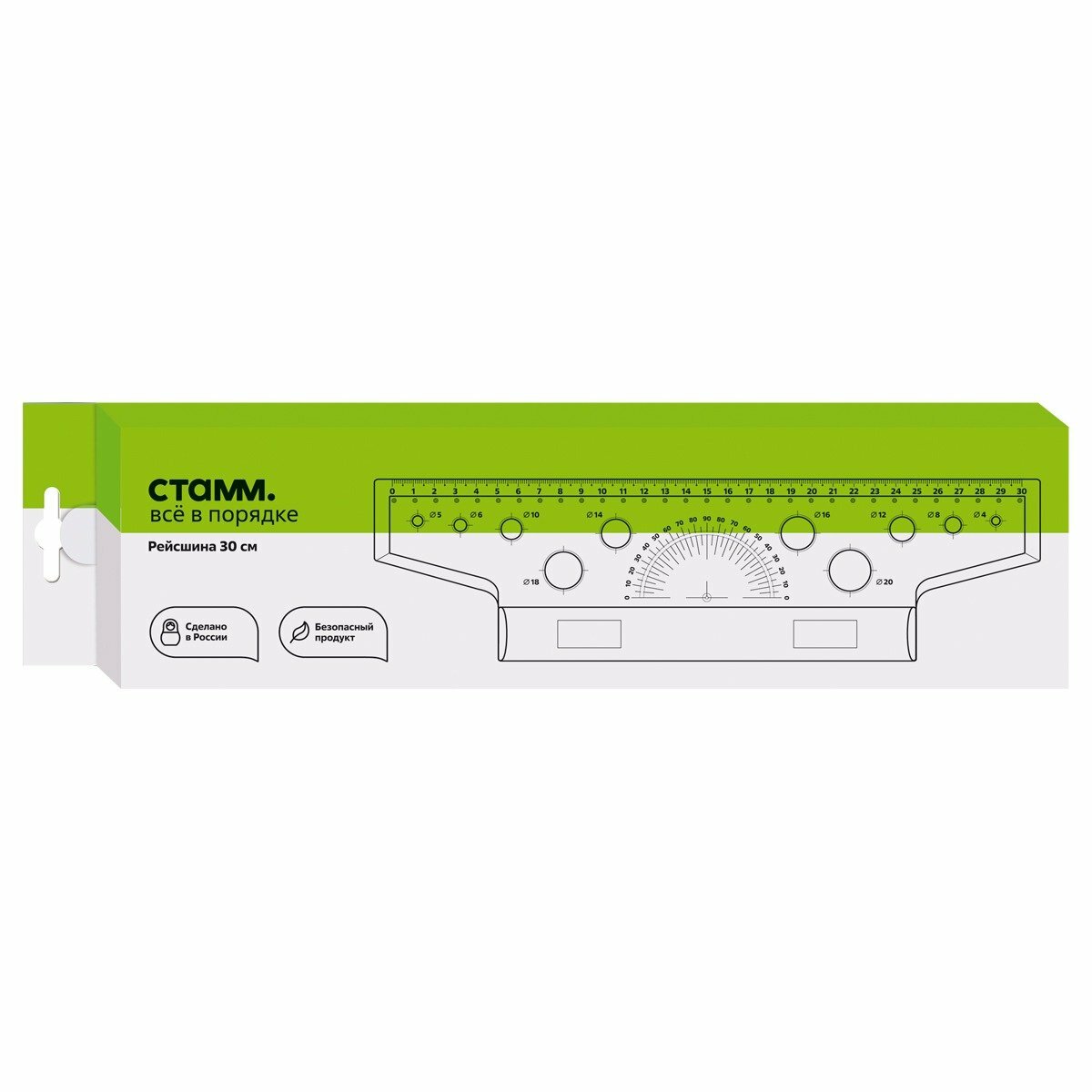 Рейсшина 30см СТАММ, металлический ролик, картонная коробка, транспортир 180°, 10 трафаретов окружностей