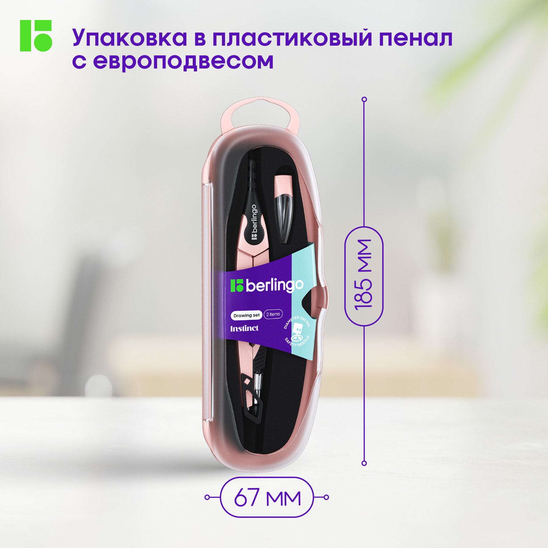 Готовальня Berlingo "Instinct", 2 предмета, циркуль 135мм, лаванда, пластиковый футляр