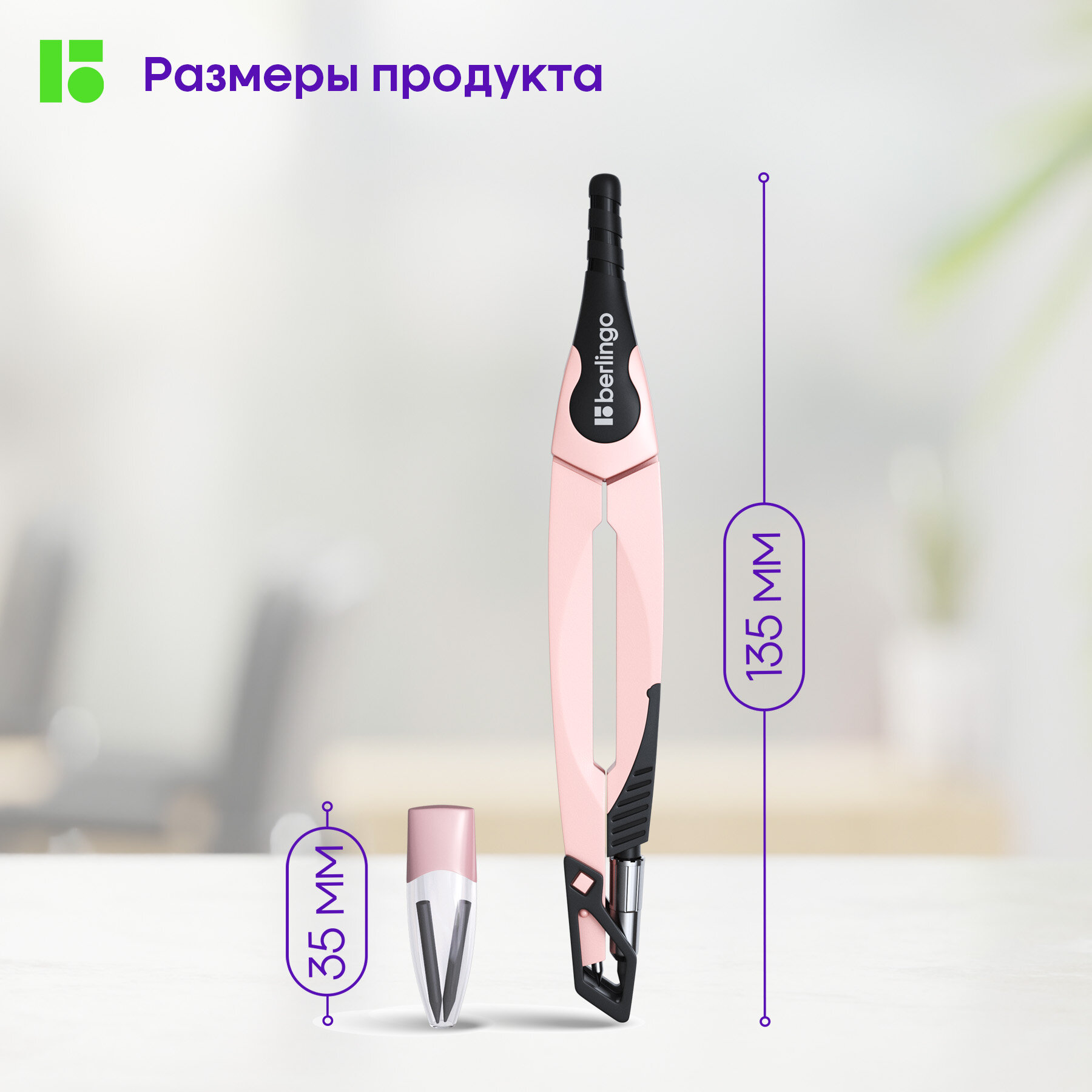 Готовальня Berlingo Envy 2 предмета циркуль 135мм пластиковый футляр розовый DS_30002c